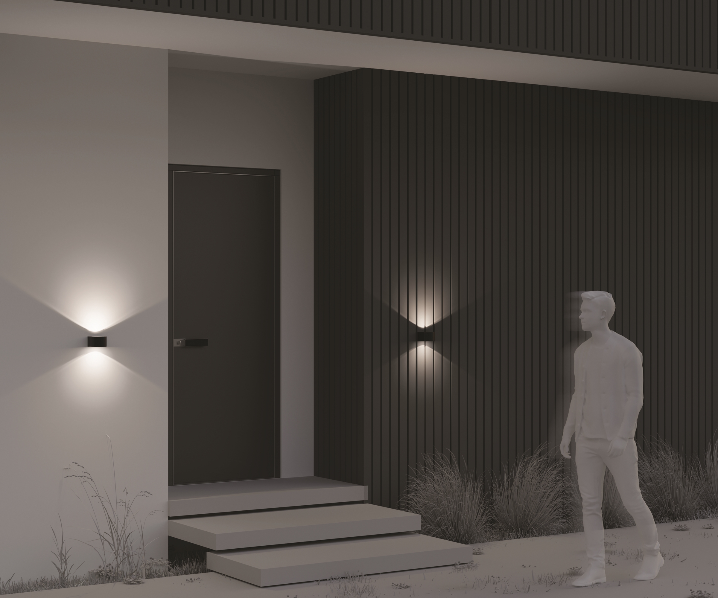 Алюминиевый корпус, цвет - графит. Минималистичный, компактный дизайн. Свечение в одну и в две стороны. LED-источник света. Цветовая температура 3000K. Степень защиты от пыли и влаги IP54.