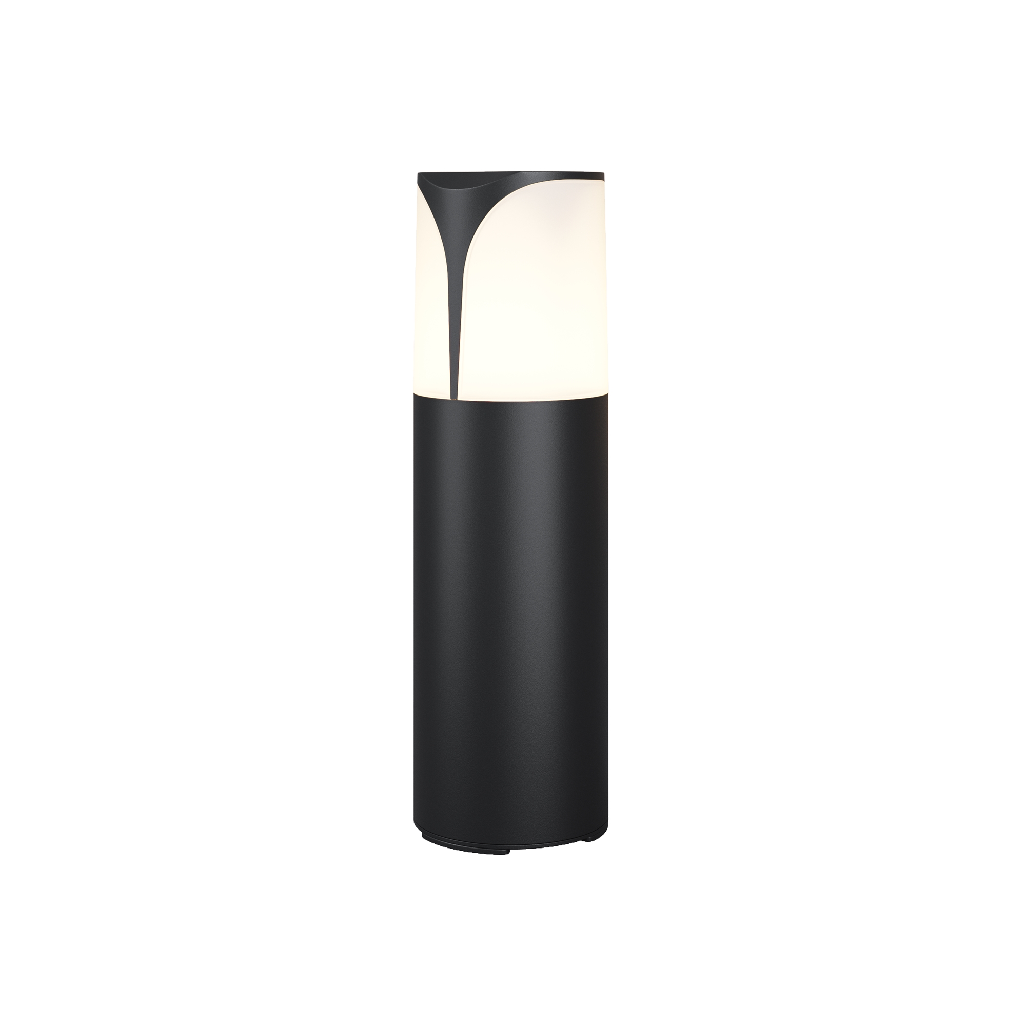 Литой алюминиевый корпус, цвет – темно серый. Плафон – матовый пластик. IP 44. Серия включает настенные и ландшафтные светильники.