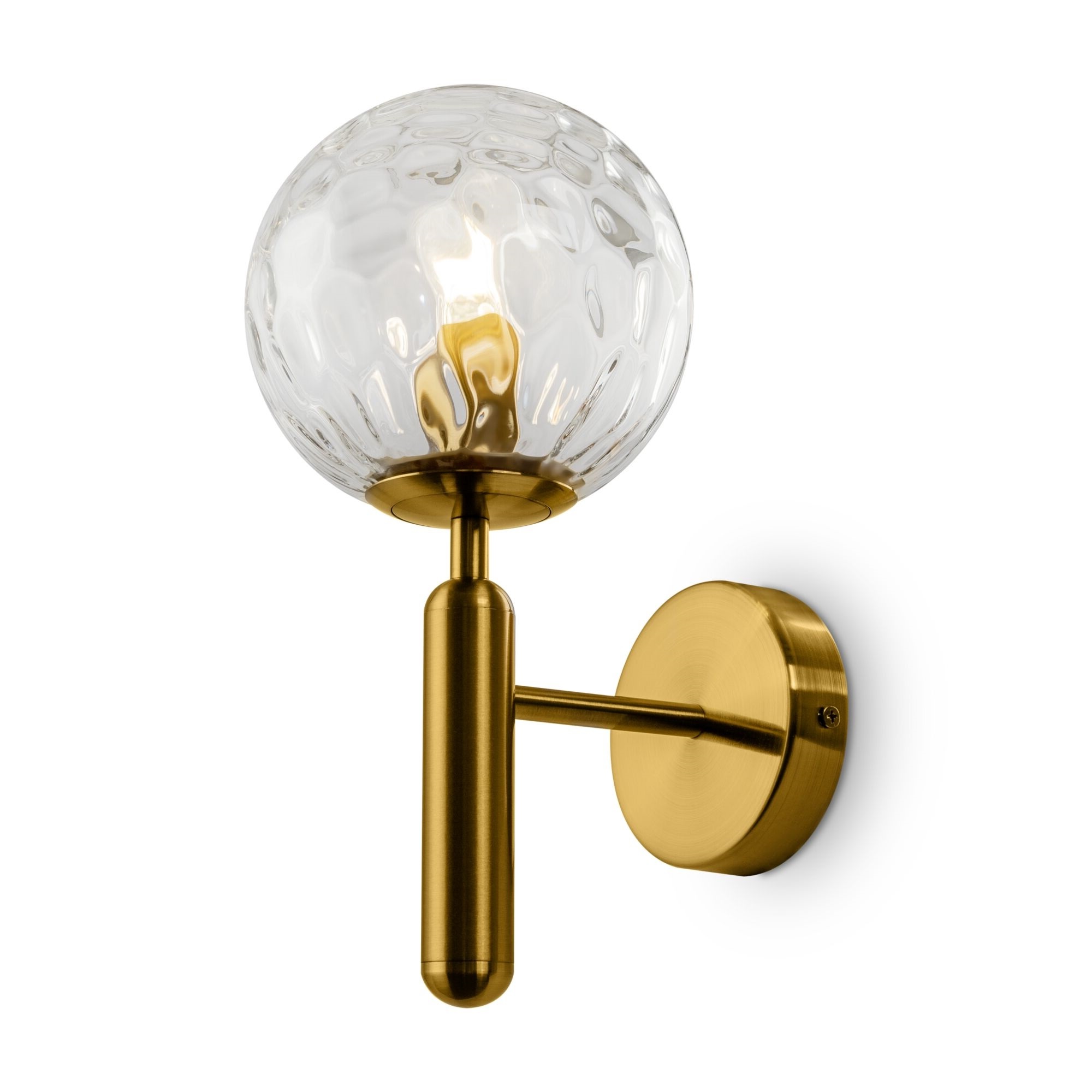 Металлическая арматура оттенка латуни. Плафоны-сферы в двух вариантах: матовое белое стекло и прозрачное с рельефной фактурой. Широкий ассортимент для зональной подсветки. В качестве источника света используется лампа с цоколем Е14.