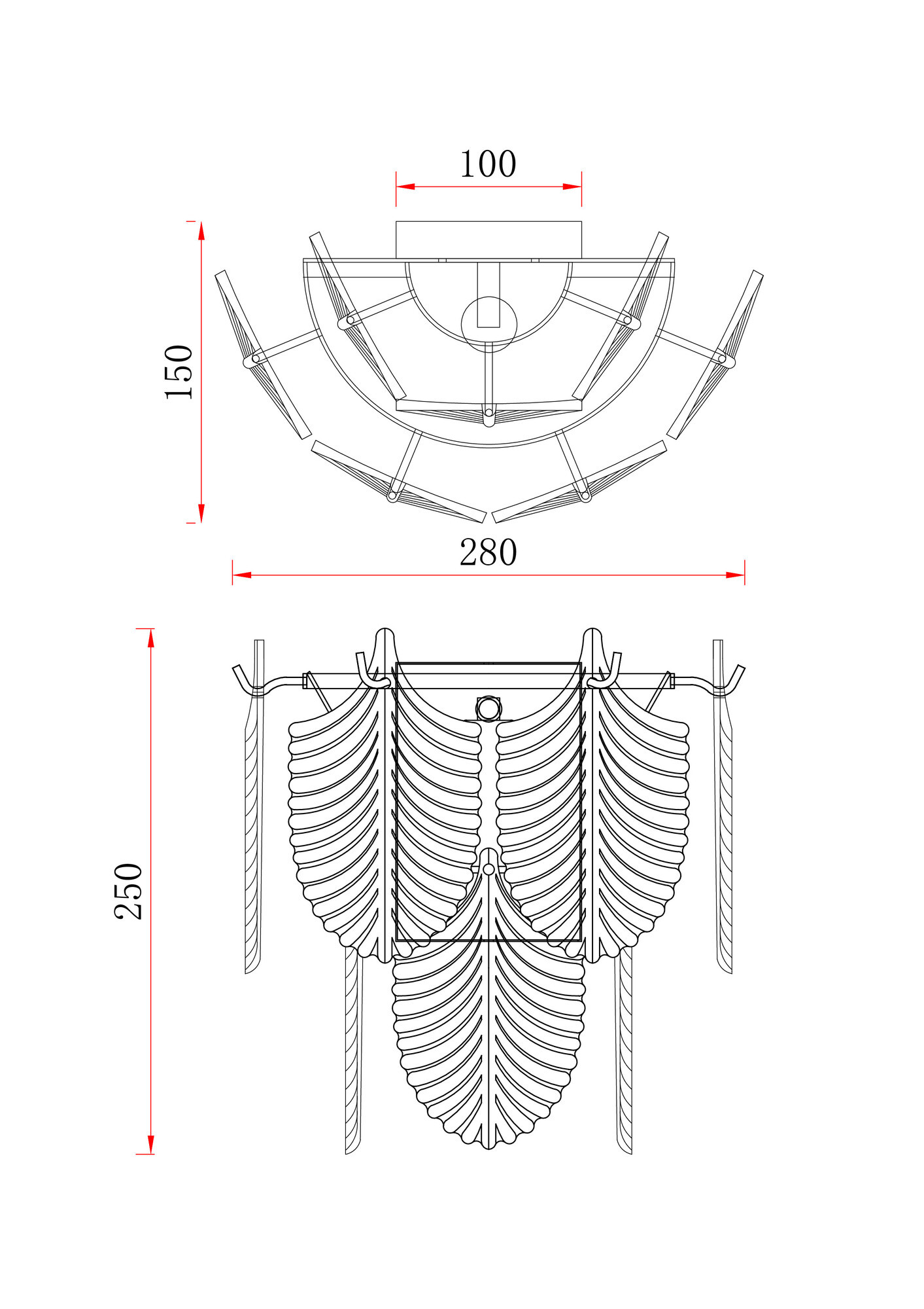 Металлическая арматура. Цвет – французское золото. Декор – рельефные лепестки двух видов: в тон арматуре и из прозрачного фактурного стекла. Современная интерпретация флористического дизайна. Источник света – лампа с цоколем Е14.