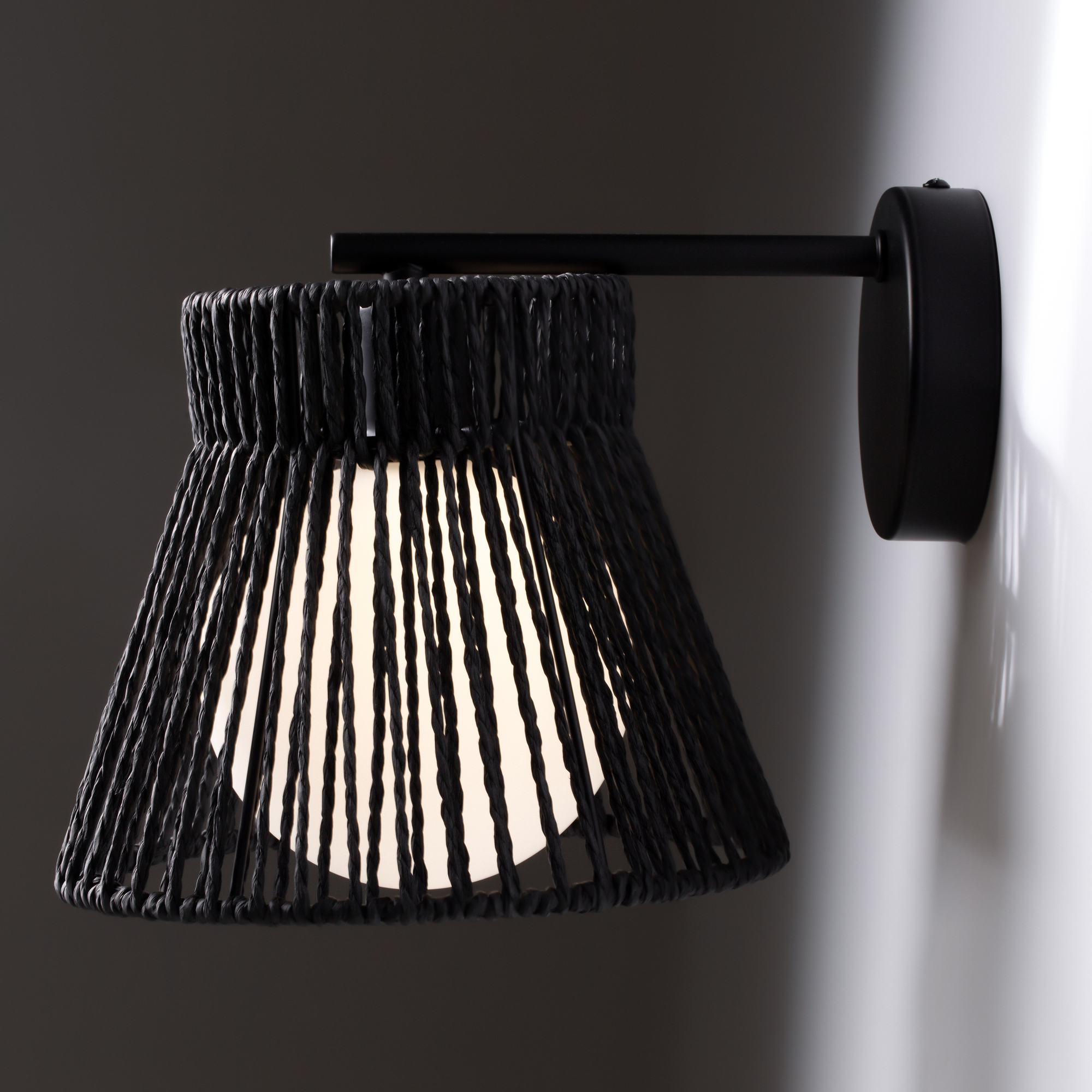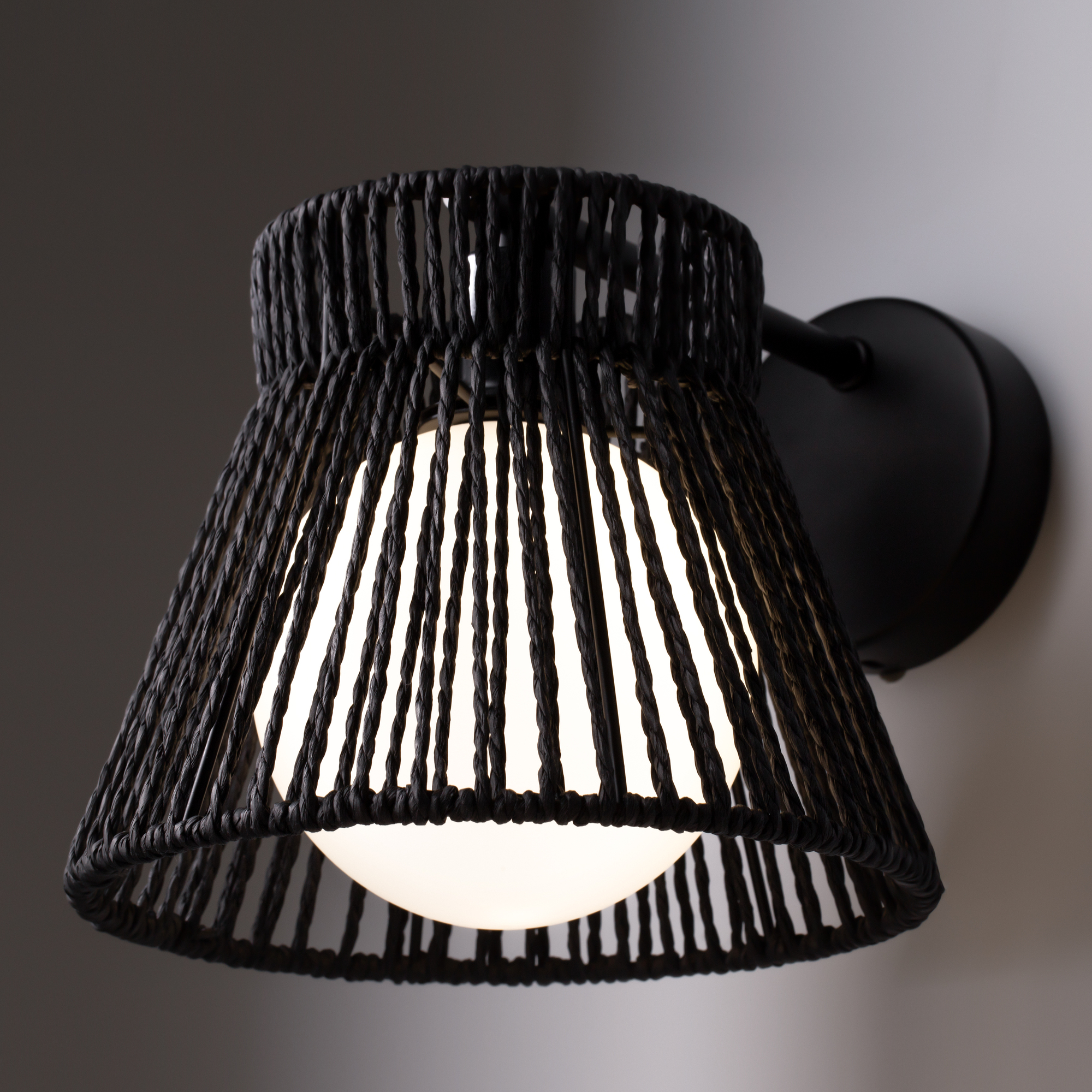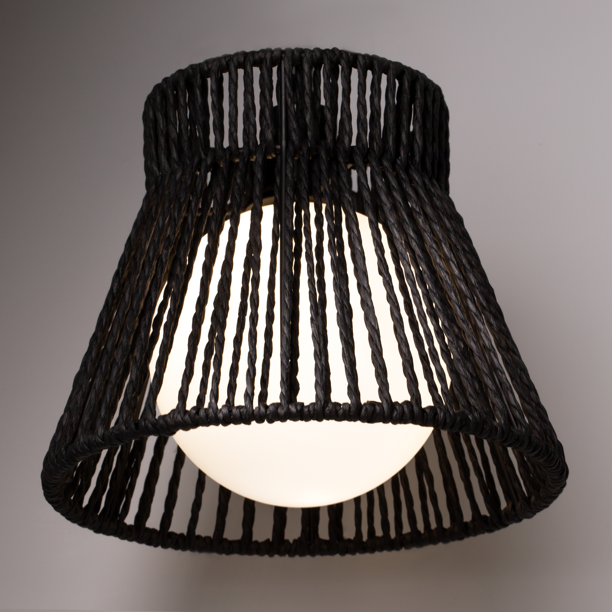 Современный актуальный свет в стиле загородного отдыха. Абажуры из металлического каркаса с обмоткой из натуральных материалов. Материал абажура - металл и веревка из бумаги paper rope. Два цвета - черный и молочный. Источник света - сменные лампы внутри белого матового стеклянного плафона, который создает мягкий рассеянный свет. Эко-дизайн создает атмосферу комфорта и уюта для жилых или коммерческих помещений.