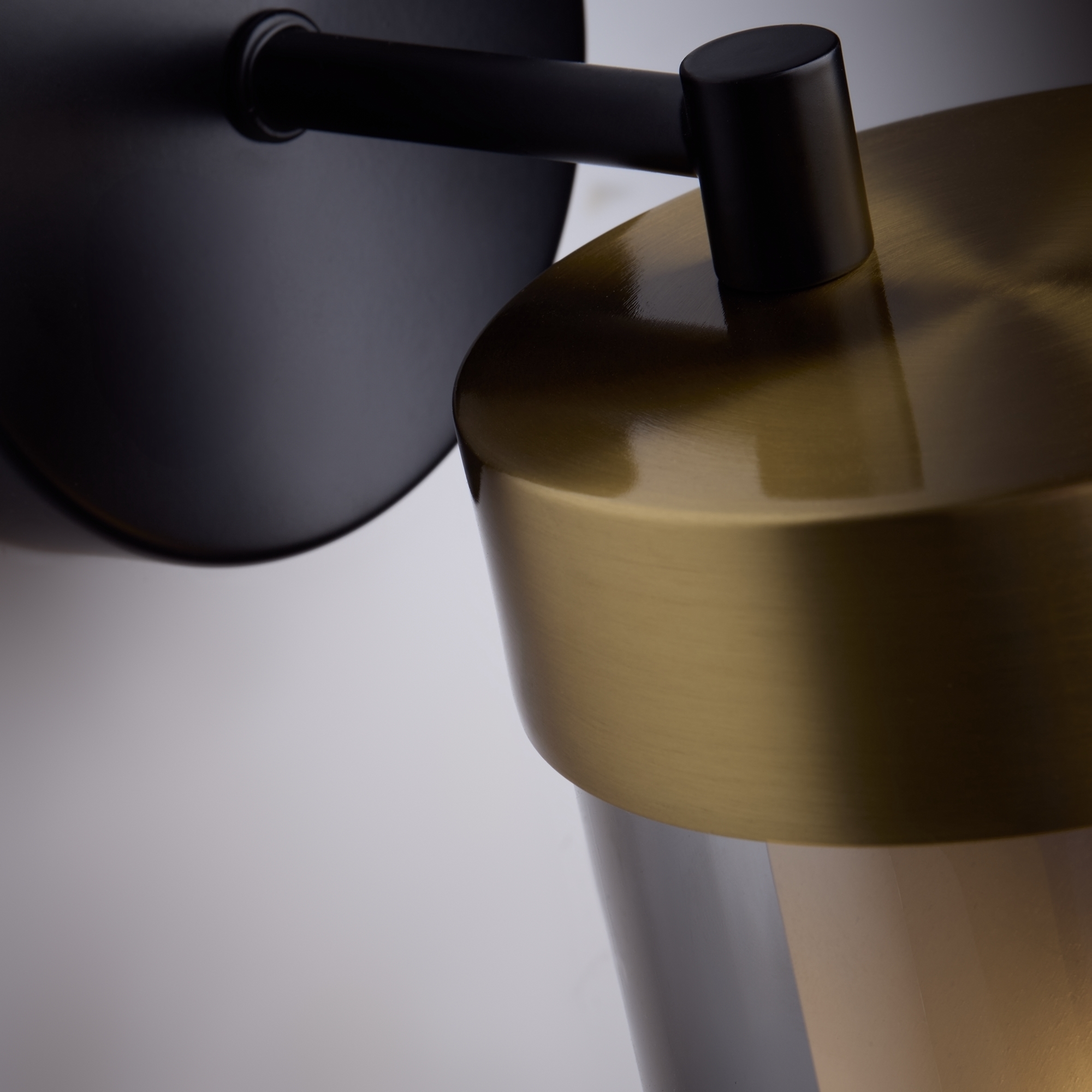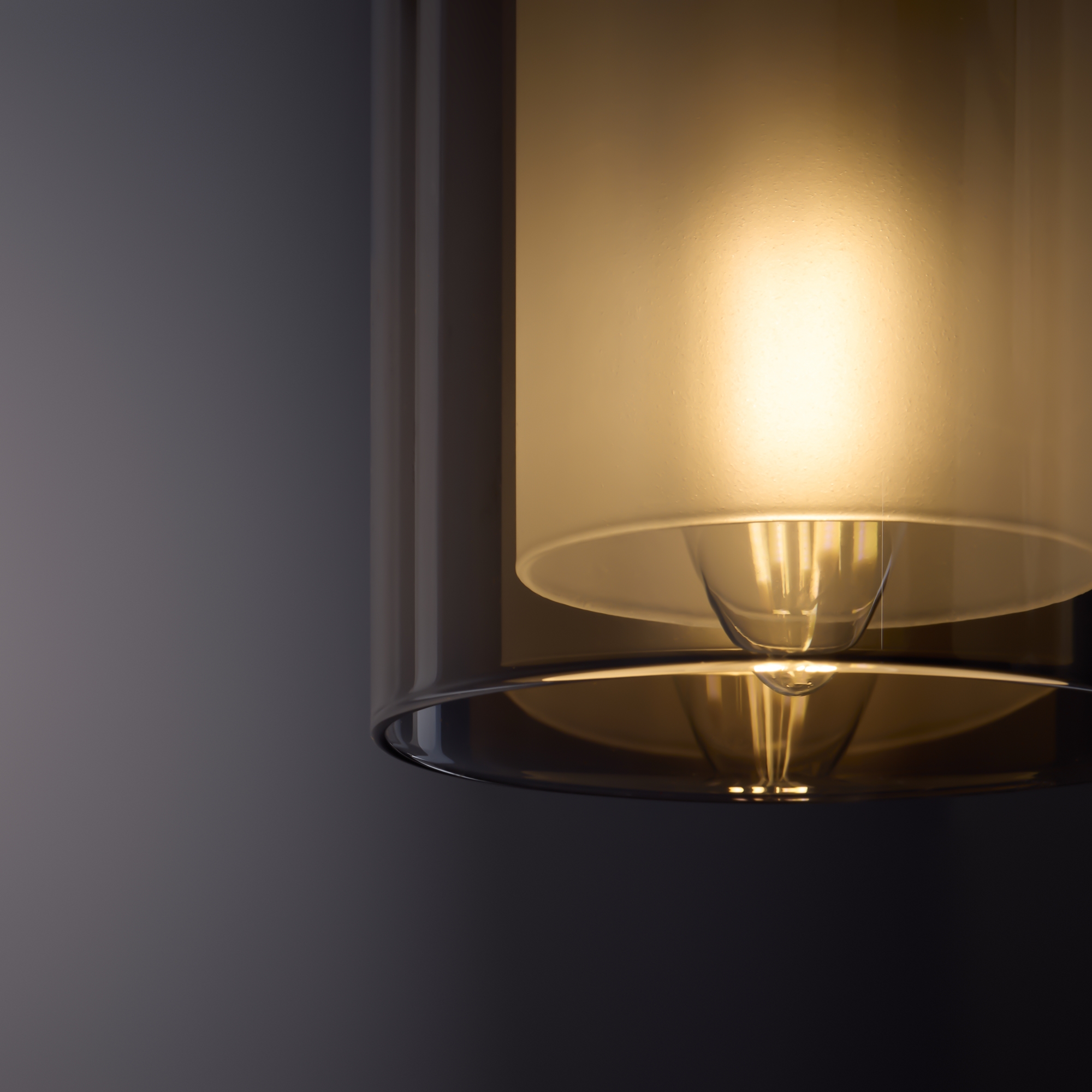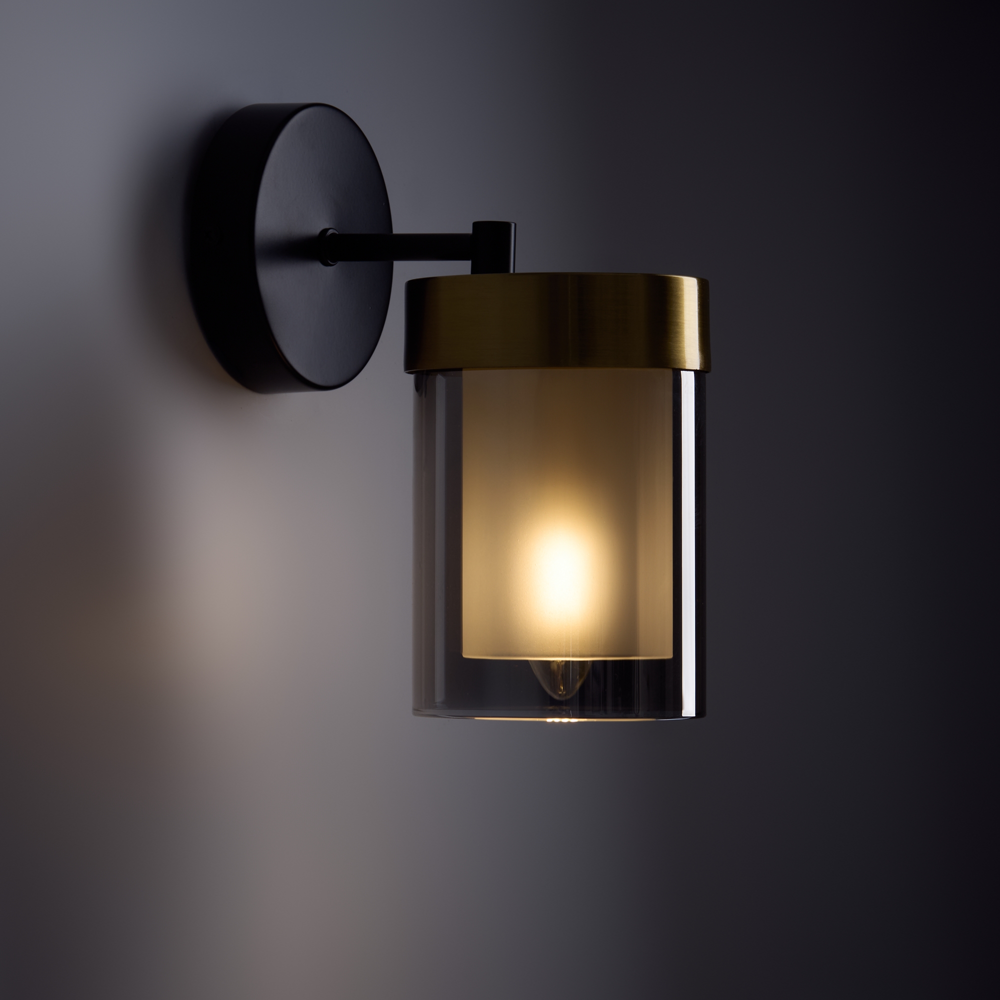 Арматура - металл в двух востребованных оттенках латунь и черный. Плафоны из двойного стекла дымчатого оттенка, внутри белый матовый. Трендовая форма плафонов в виде цилиндра. Потолочные светильники подойдут для помещений с низкими потолками. Источник света лампа. Цоколь E14