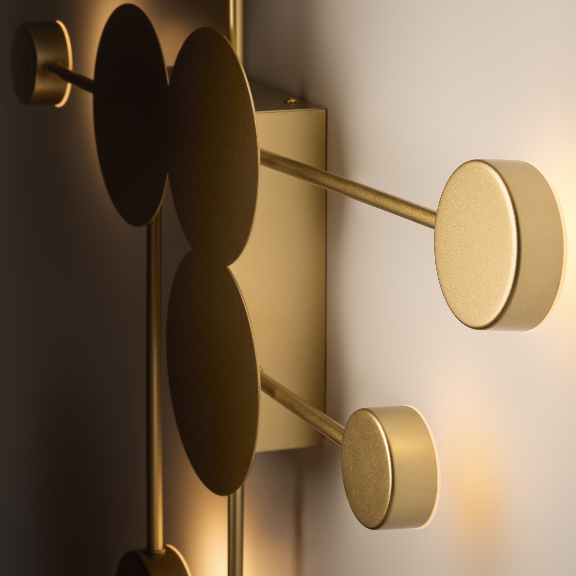 Арматура металл. Цвет арматуры золото и черный матовый. Порошковая покраска. Переотраженное освещение для создания дополнительного источника акцентного освещения. LED источник света. Цветовая температура 3000К.