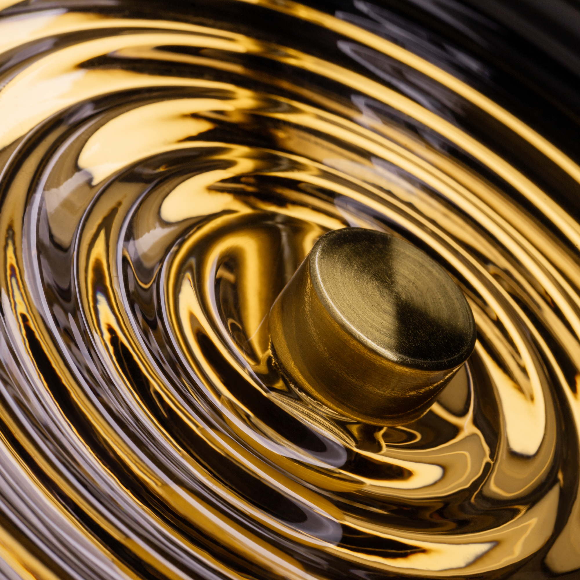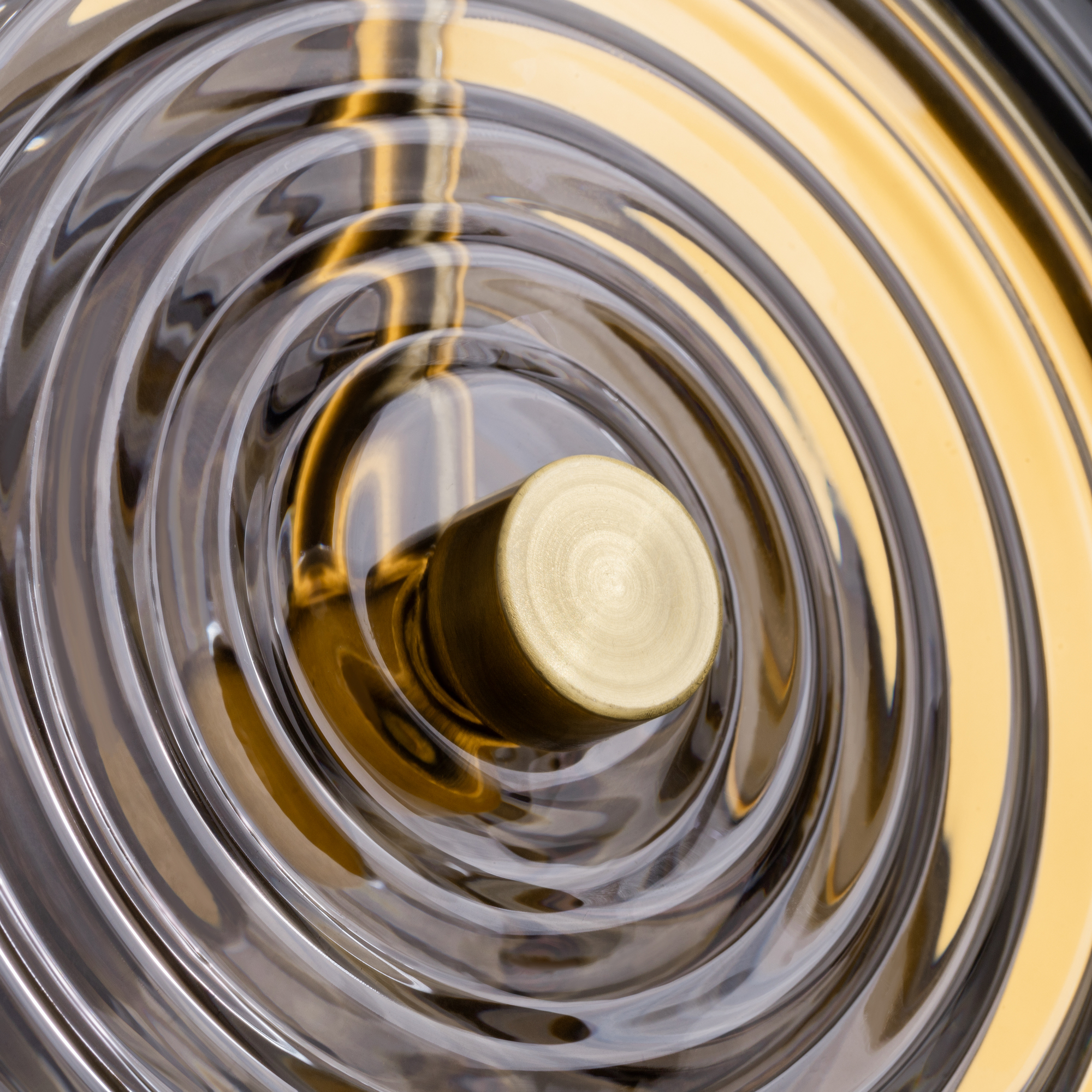 Арматура - металл. Цвет арматуры латунь. Плафоны из стекла в форме леденцов выполнены в четырех цветах: серый, зеленый, прозрачный и желто-оранжевый. Широкий спектр типов светильников: торшеры, настенные бра и подвесы. LED источник света. Цветовая температура 3000К.