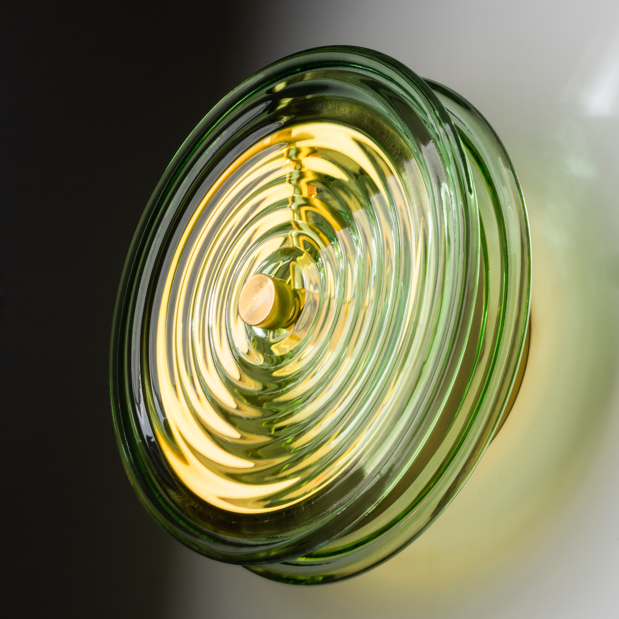 Арматура - металл. Цвет арматуры латунь. Плафоны из стекла в форме леденцов выполнены в четырех цветах: серый, зеленый, прозрачный и желто-оранжевый. Широкий спектр типов светильников: торшеры, настенные бра и подвесы. LED источник света. Цветовая температура 3000К.