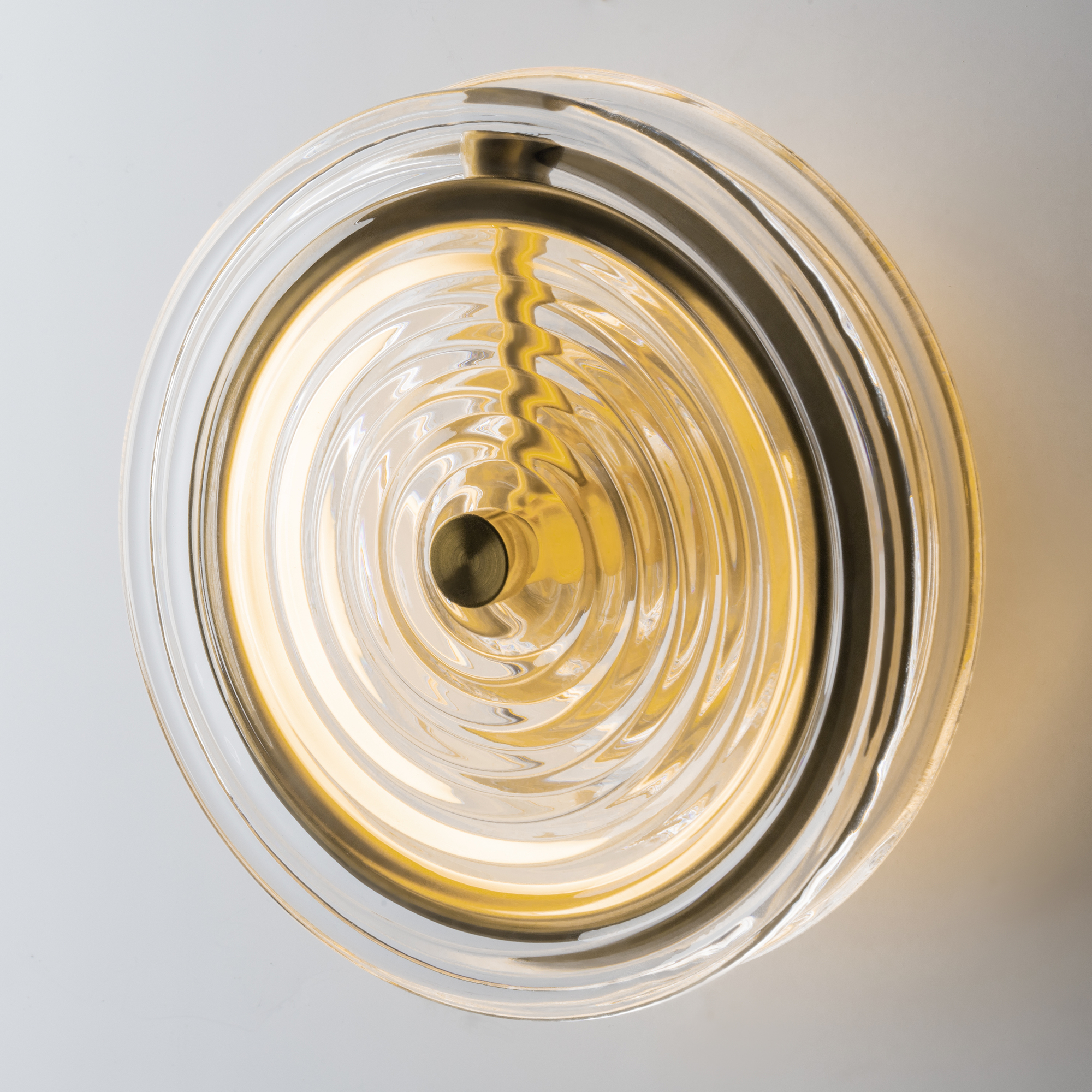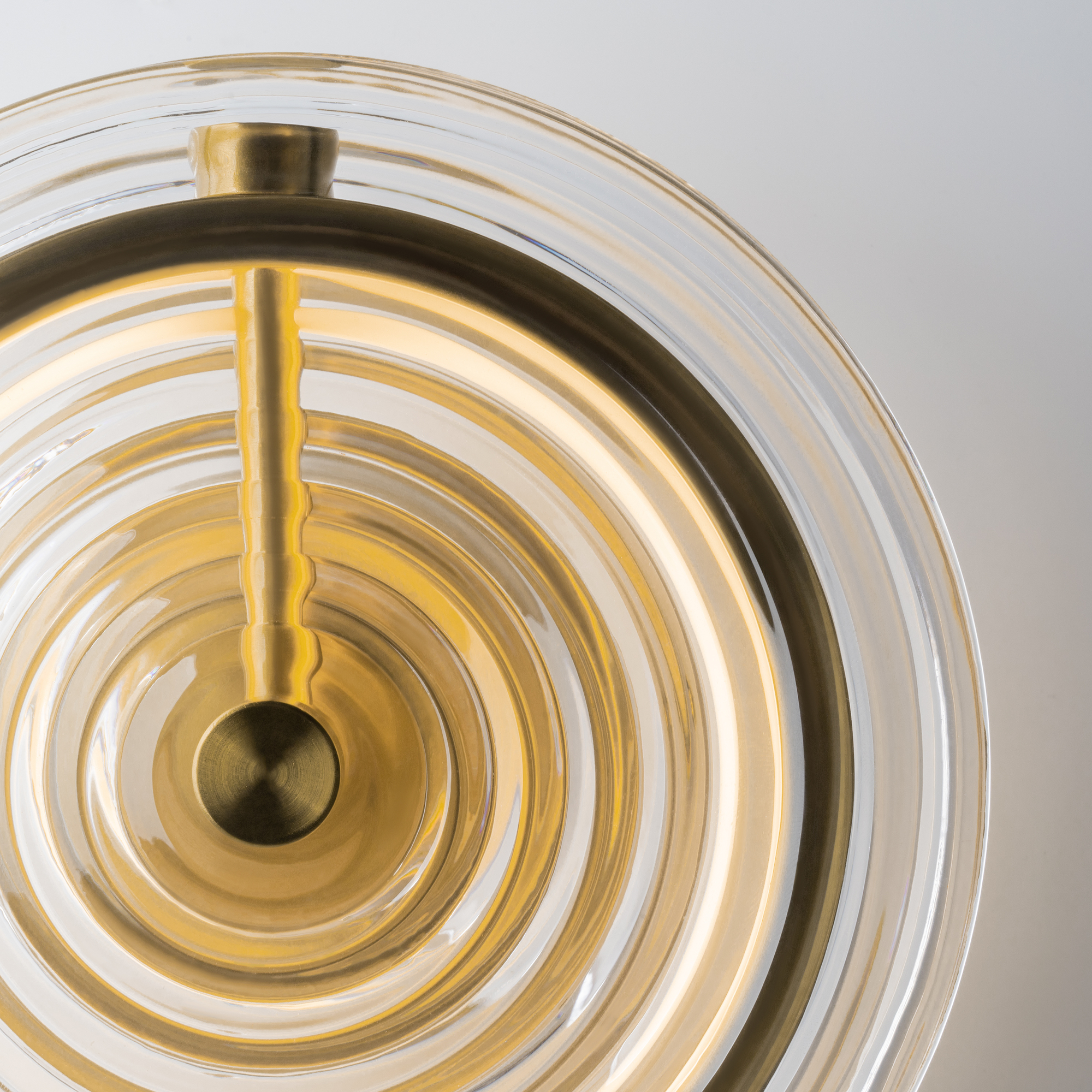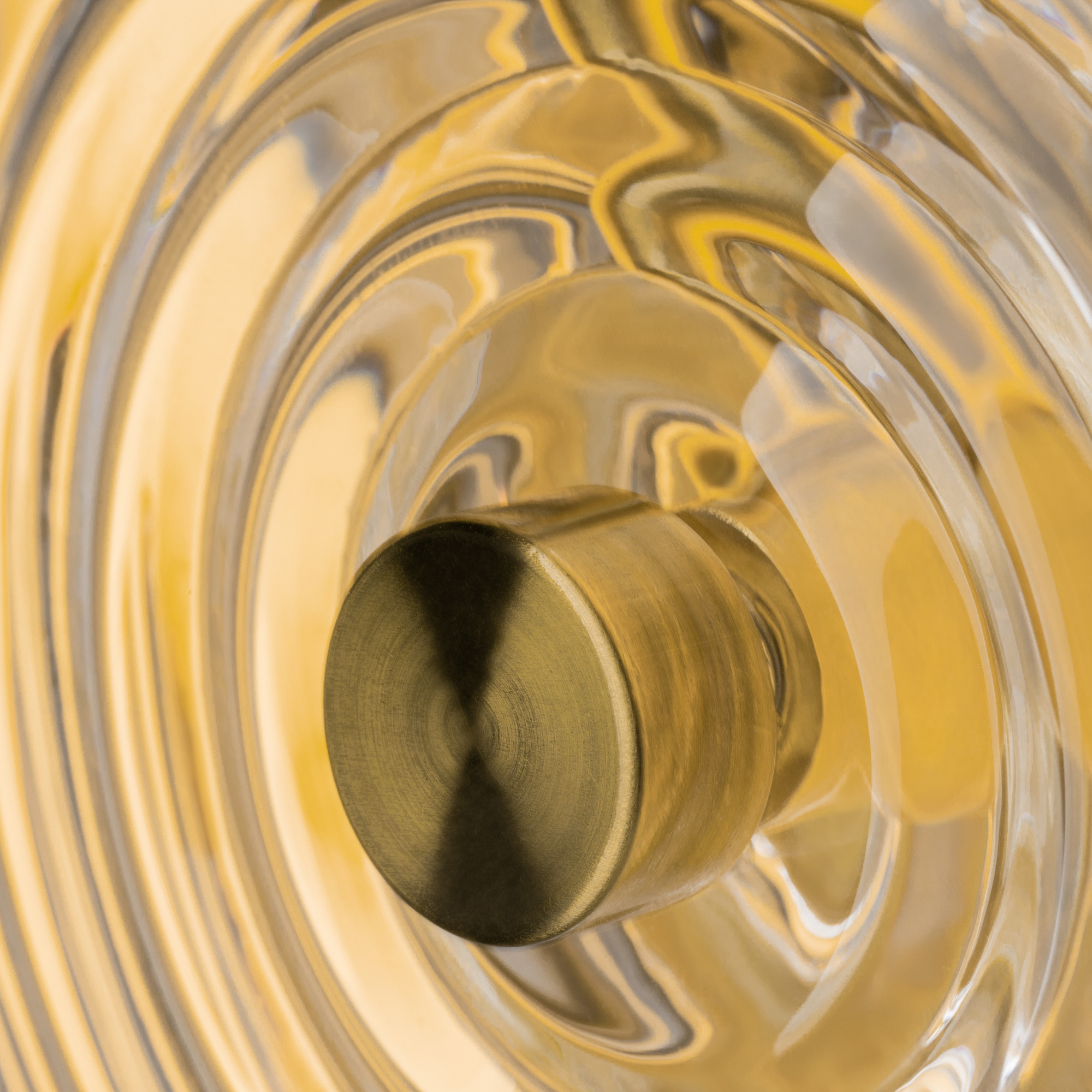 Арматура - металл. Цвет арматуры латунь. Плафоны из стекла в форме леденцов выполнены в четырех цветах: серый, зеленый, прозрачный и желто-оранжевый. Широкий спектр типов светильников: торшеры, настенные бра и подвесы. LED источник света. Цветовая температура 3000К.