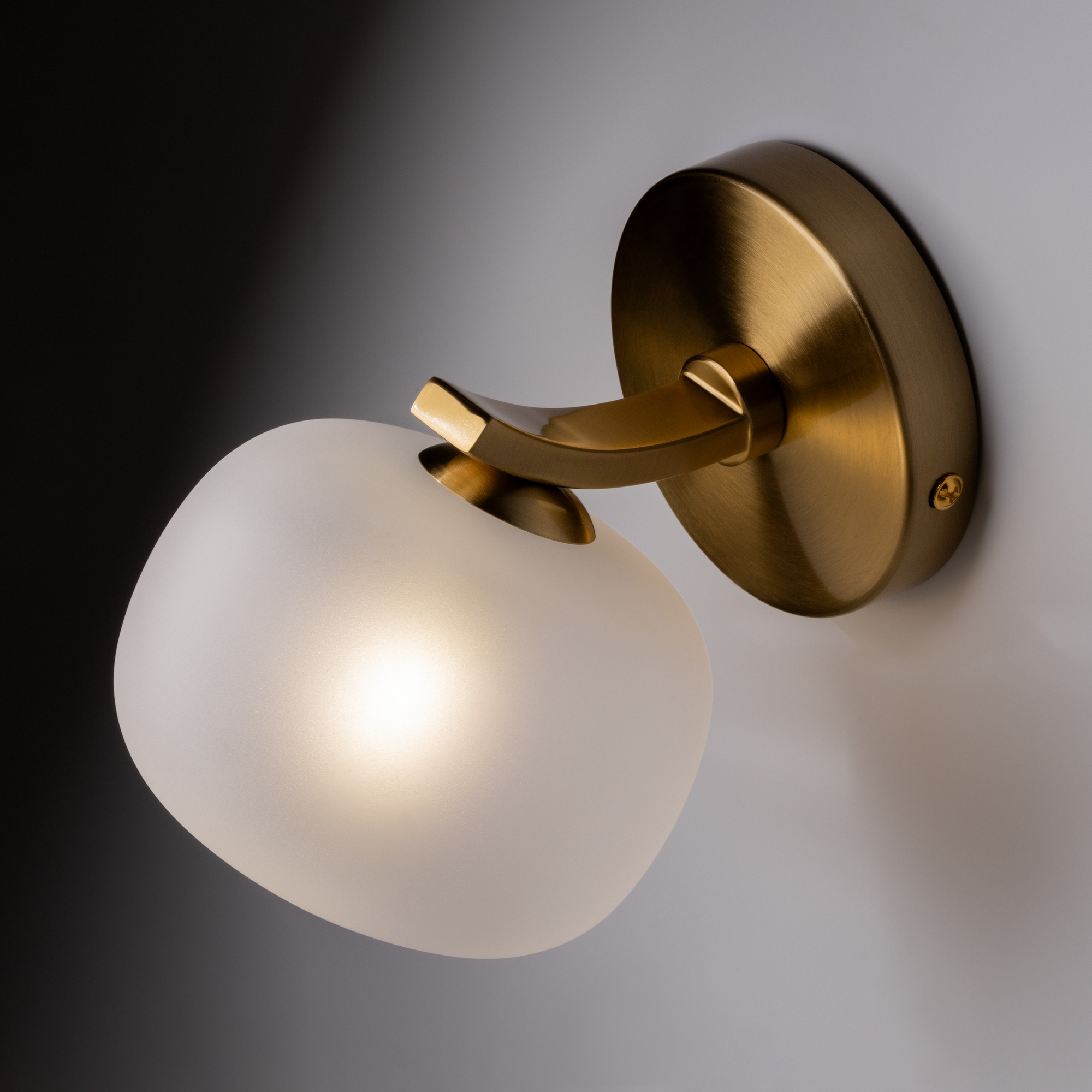 Арматура - металл. Цвет арматуры - латунь. Серия с необычной формой плафонов — немного приплюснутые, матовые белые. Настольные лампы и настенные бра выгнутой формы. Источник света лампа. Цоколь G9.