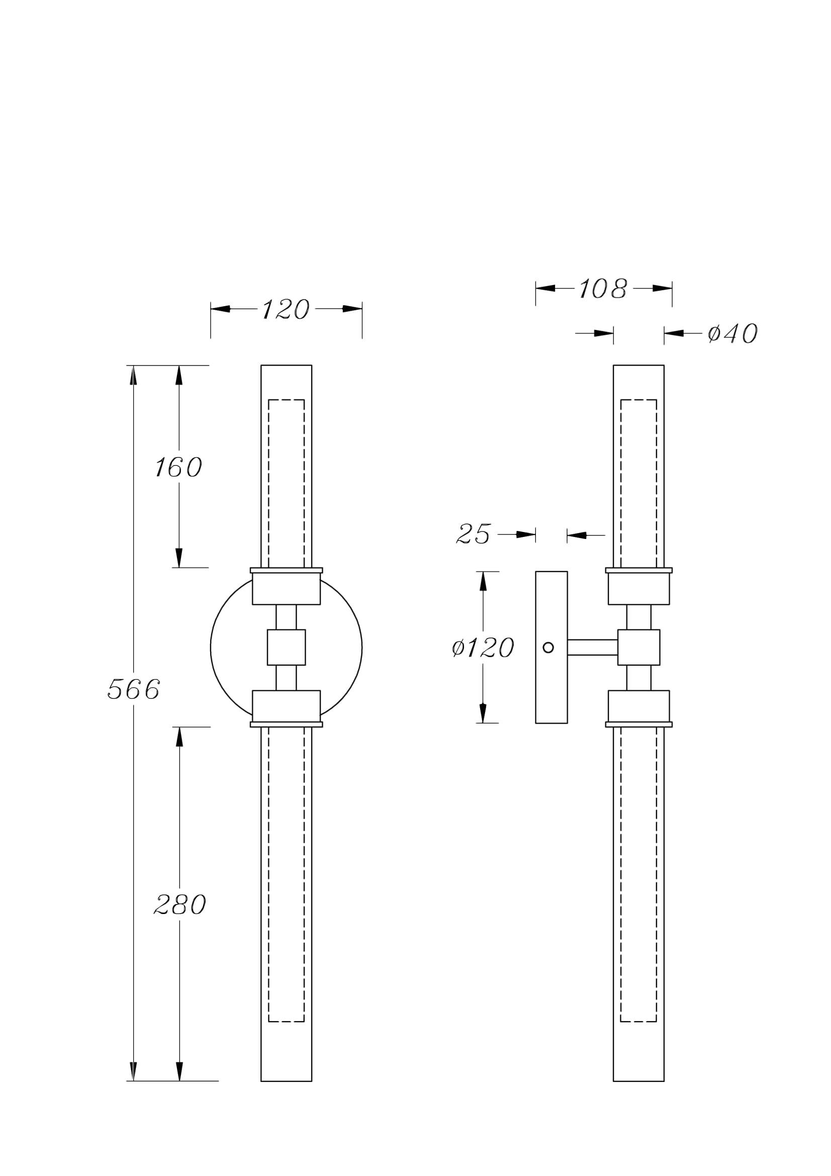 Арматура из металла в двух оттенках: черный и латунь. Плафон – прозрачная стек лянная трубка. LED-источники света с цветовой температурой 3000К. Простые геометричные формы.
