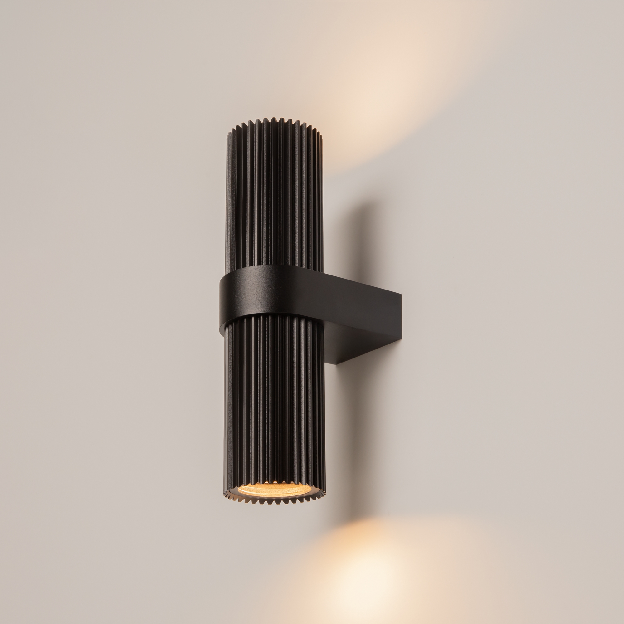 Материал арматуры — алюминий. Порошковое окрашивание в три цвета: матовый черный, матовый белый, матовое золото. Плафон с трендовой рифленой фактурой. Подвесные модели с внешним стеклянным элементом. Яркий направленный свет.