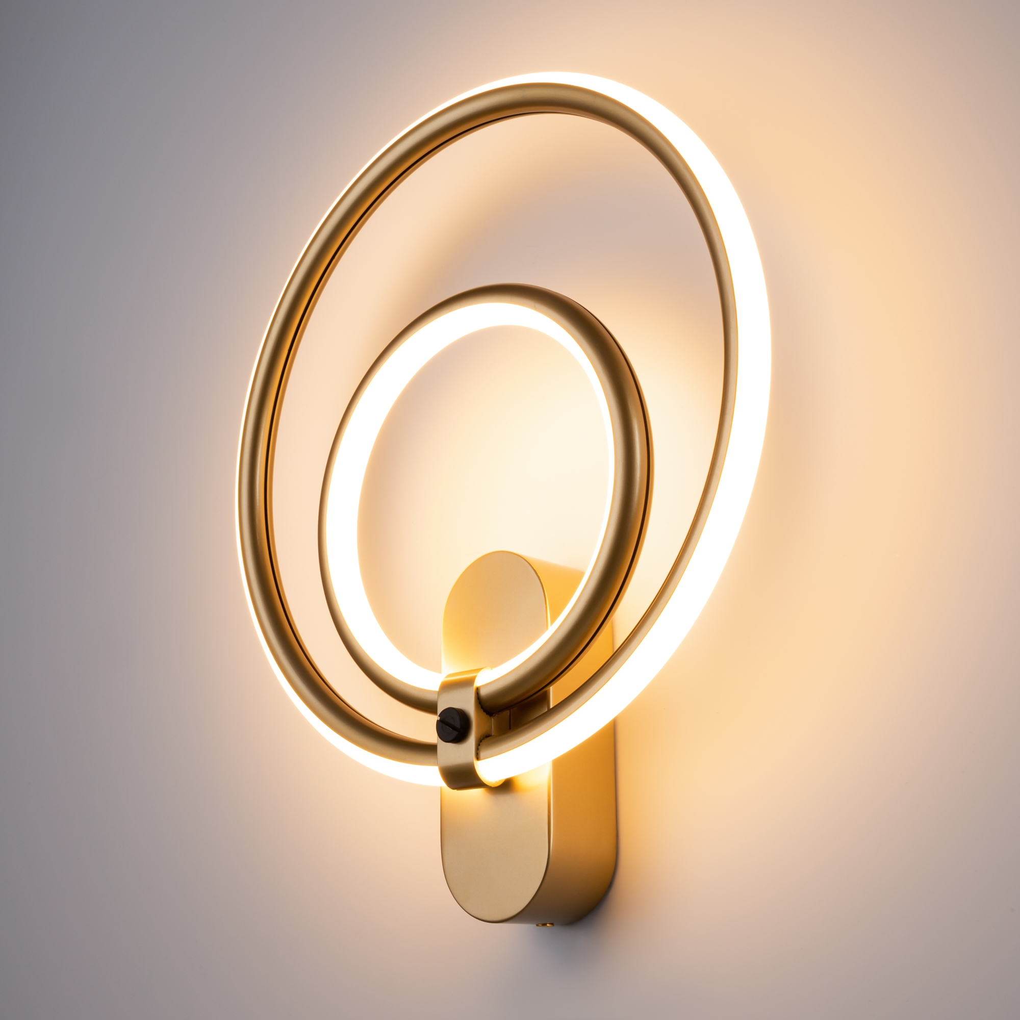 Серия Link представлена подвесными и настенными светильниками с разной вариацией светодиодных колец. Арматура - из металла в цвете латунь с чёрными элементами. Источник света — LED-кольца. Цветовая температура — 3000 K. Угол рассеивания — 125 градусов. Провод регулируемый, 3 метра.