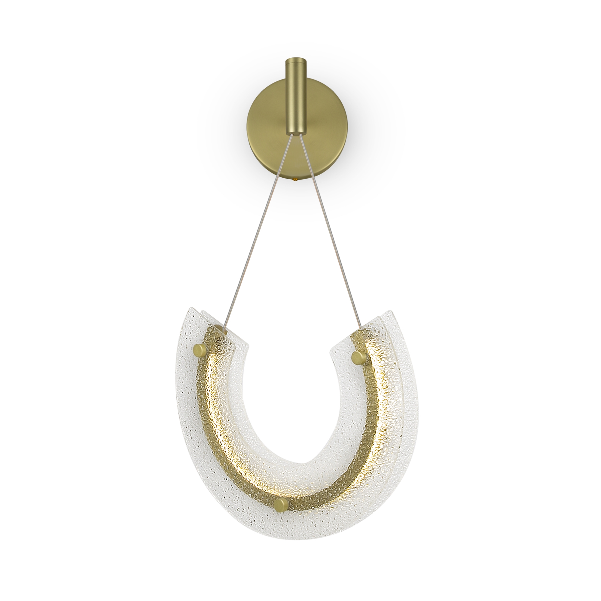 Металлическая арматура в цвете золото и хром. Декор — фактурное прозрачное стекло. Дизайн, вдохновленный ювелирным искусством Мезоамерики. LED-источник света. Цветовая температура 3000К.