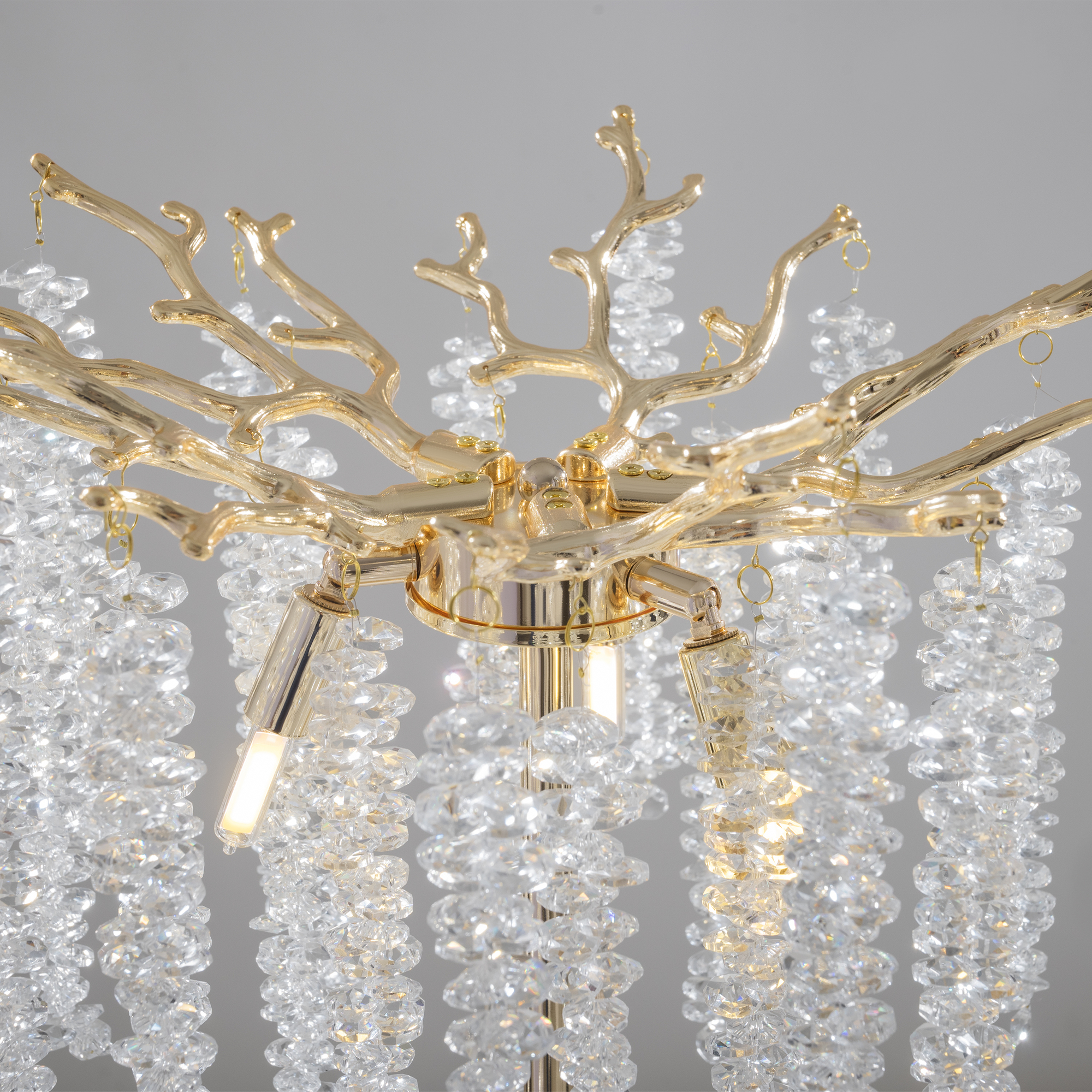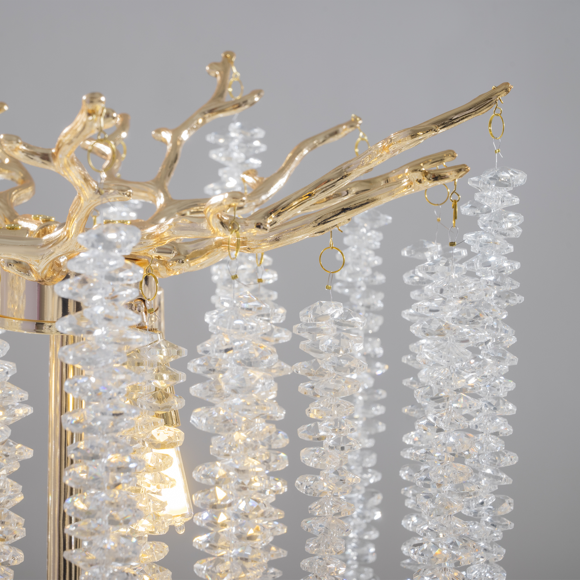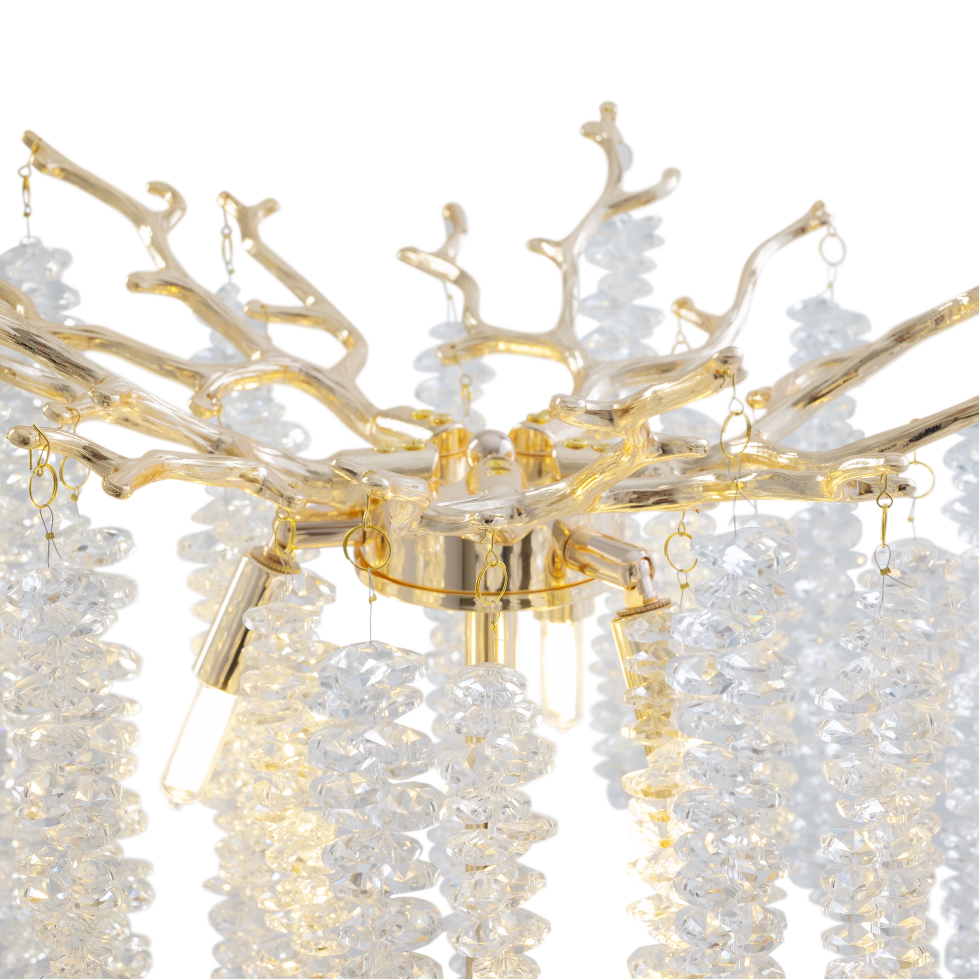 Материалы арматуры —металл, цвет — золото. Хрустальные декоративные элементы напоминают капельки - создают глубокие переливы света. Дизайн в трендовой растительной тематике. Источник света — лампа с цоколем G9 и с поворотной функцией.