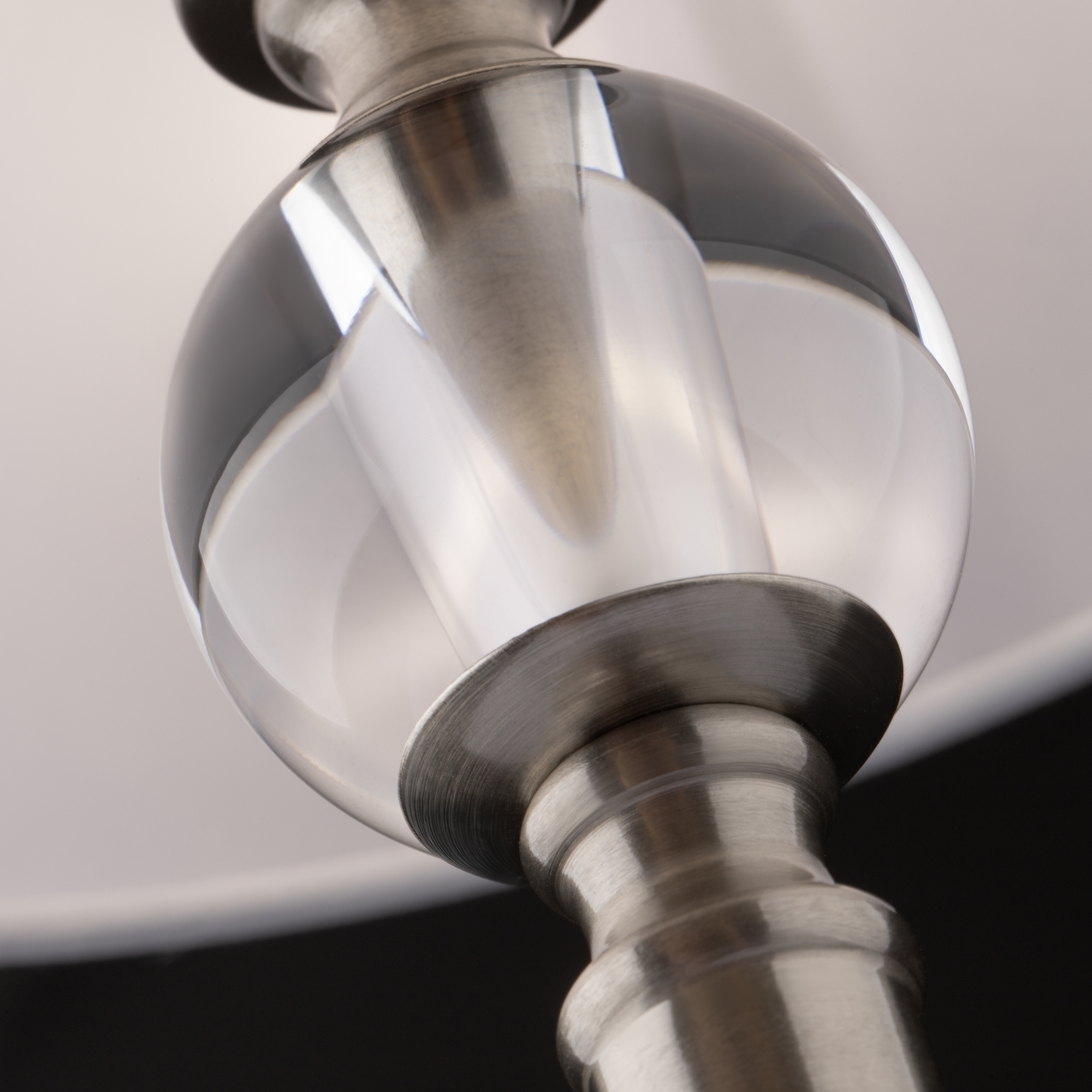 Арматура - металл, плафоны - стекло. Цветовые комбинации арматуры и плафона: черный + прозрачный, черный + янтарный, латунь + прозрачный. Элементы декора - выдувные «бусины» из стекла. Высота проводов регулируется. Источник света - лампа с цоколем GU10.
