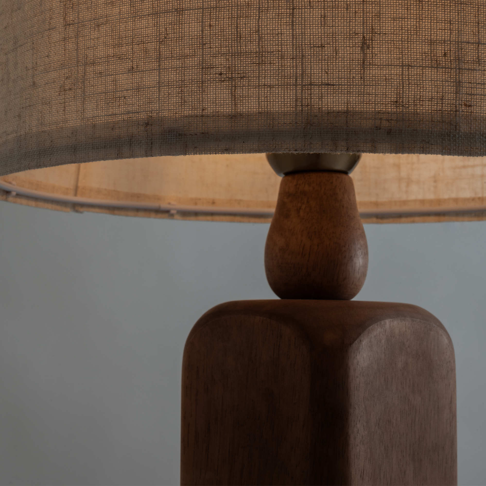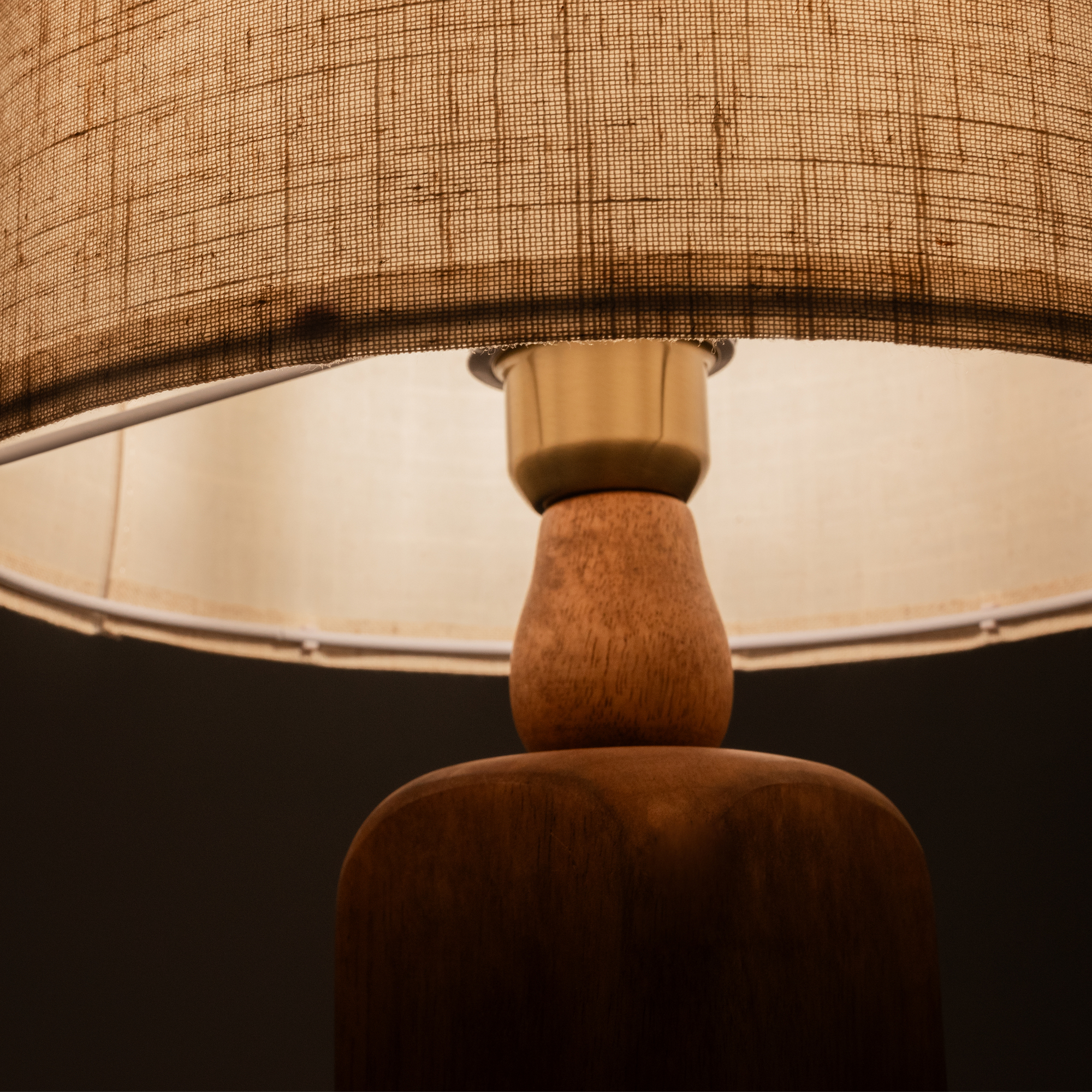 Основание светильника — натуральное дерево, цвет — бежевый. Тканевый абажур из натурального льна. Трендовый светильник в стиле эко. Источник света — лампа с цоколем E14.