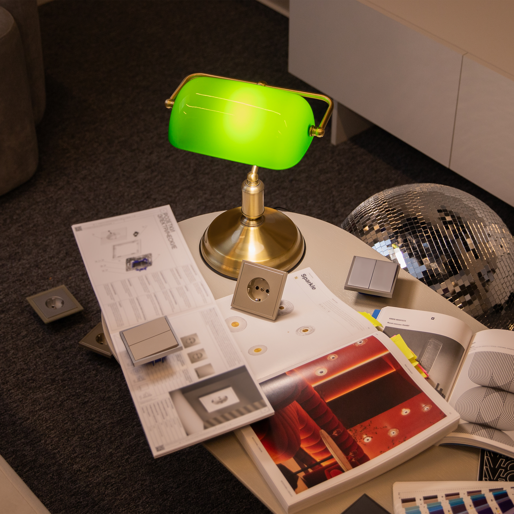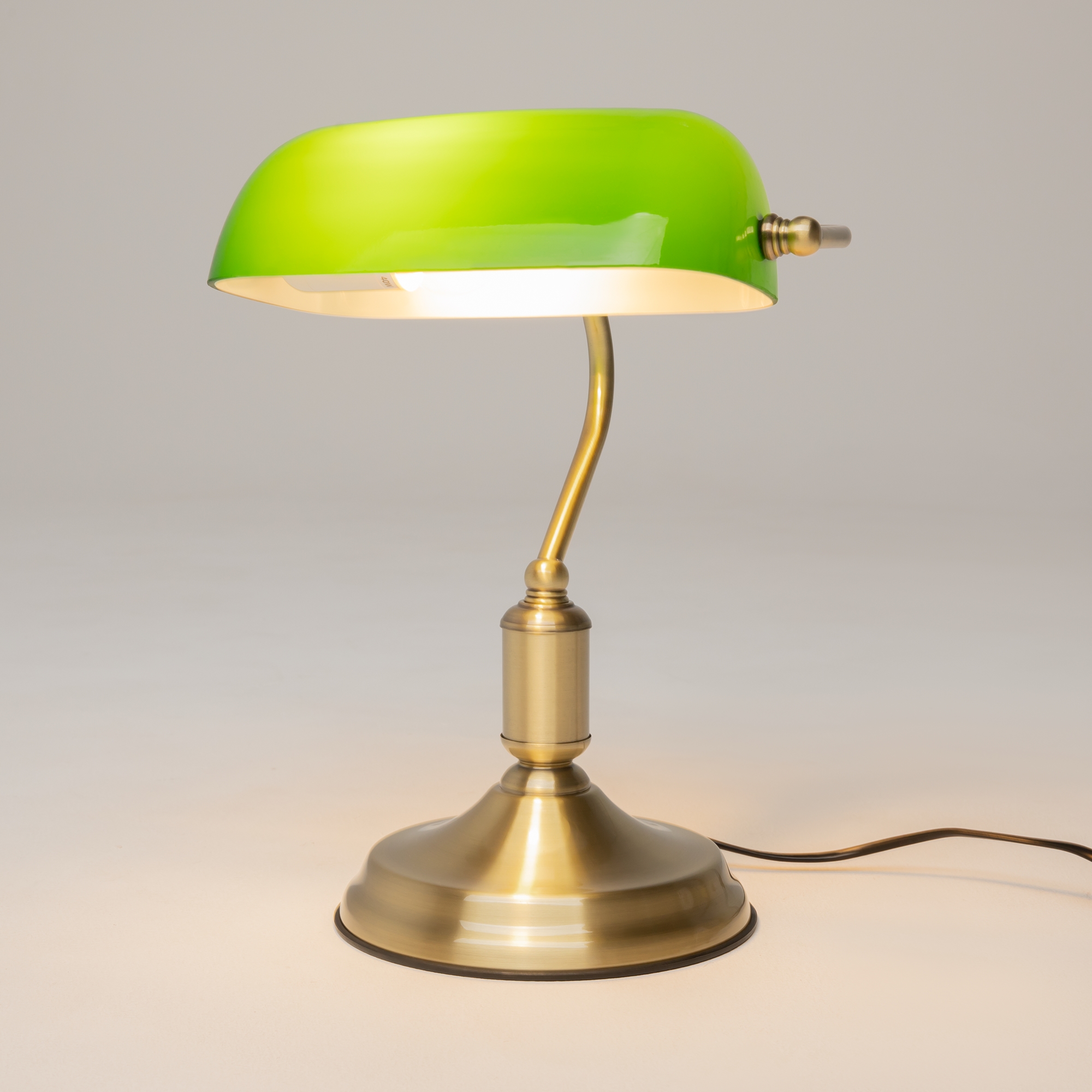 Материал арматуры – металл, цвет – никель, латунь. Стеклянный плафон в двух оттенках: белый и зеленый. Изнутри плафон окрашен в белый цвет. Классический силуэт.