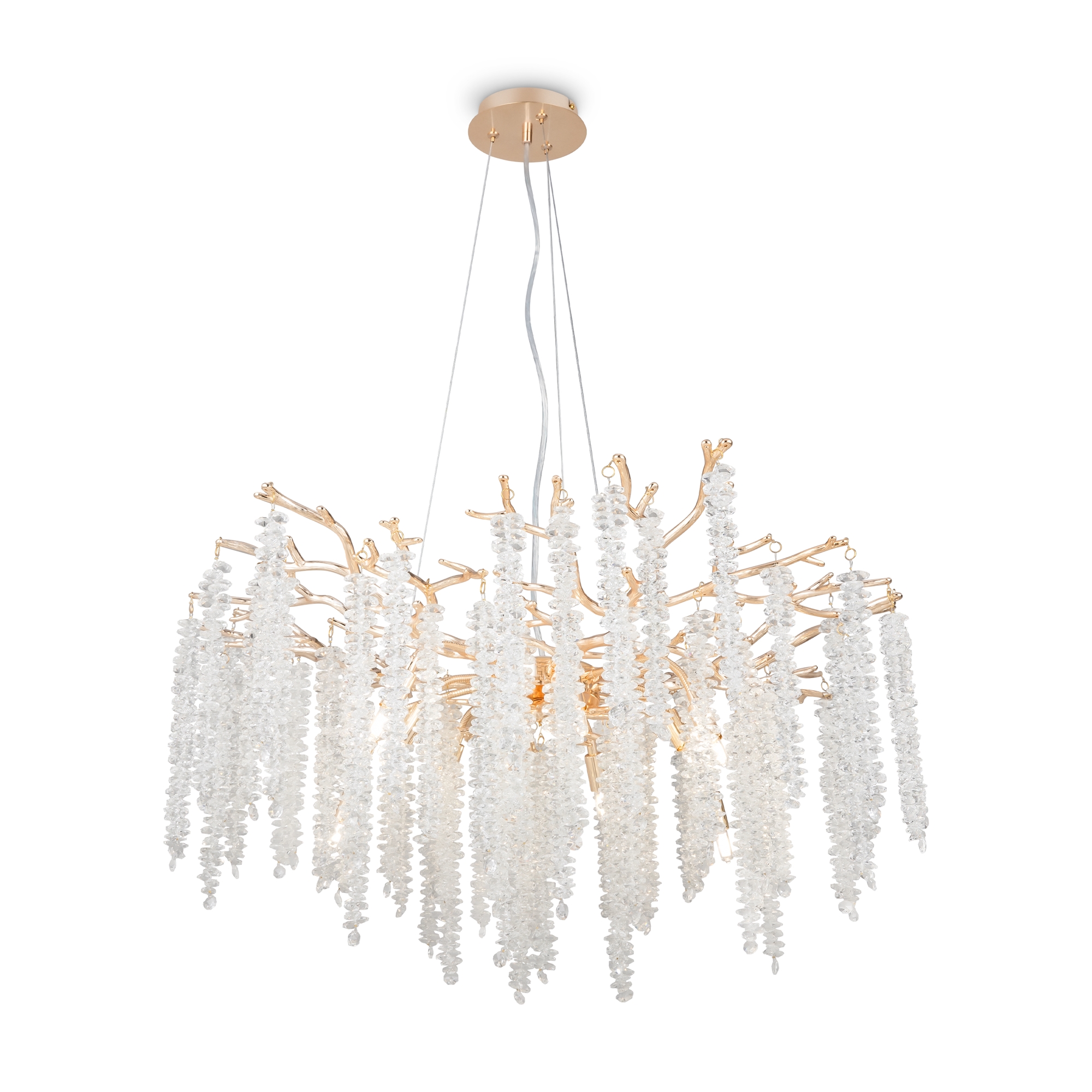 Материалы арматуры —металл, цвет — золото. Хрустальные декоративные элементы напоминают капельки - создают глубокие переливы света. Дизайн в трендовой растительной тематике. Источник света — лампа с цоколем G9 и с поворотной функцией.