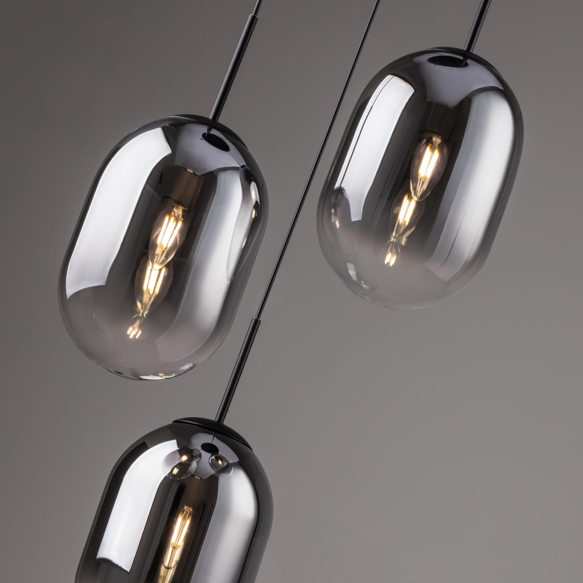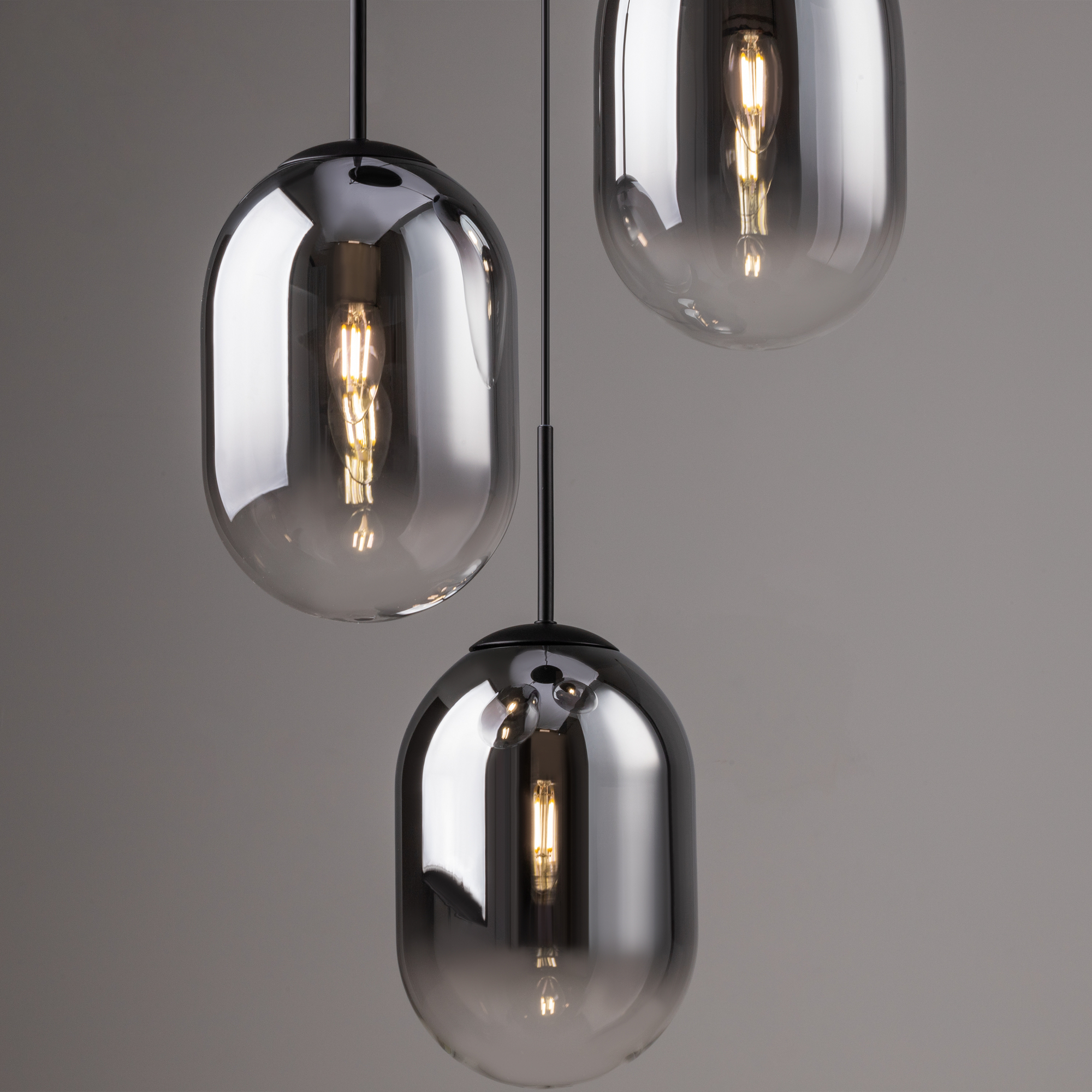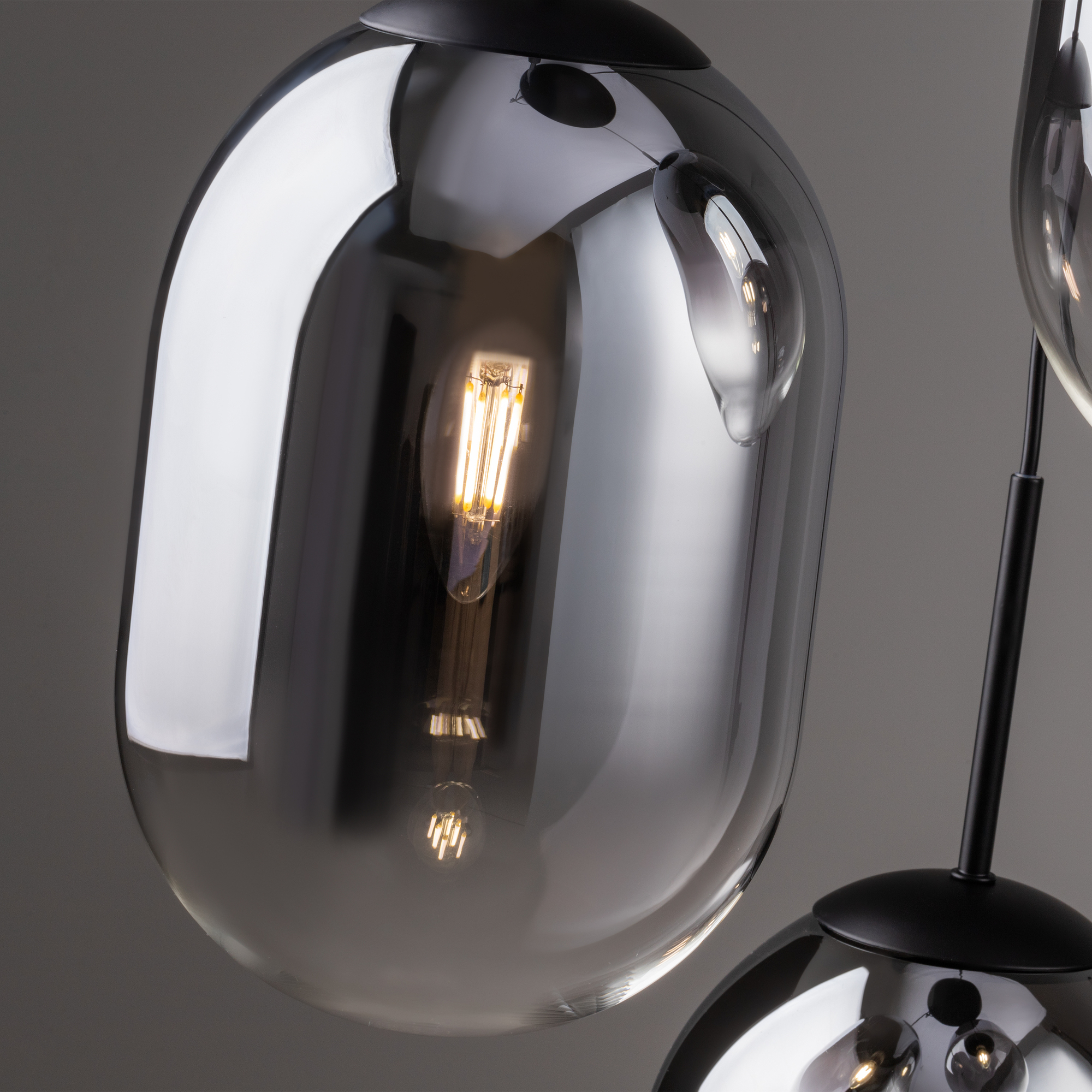 Арматура из металла матового черного цвета. Плафон из стекла с окрасом растяжка. Цвет дымчатый. Модификация — настенные, потолочные и настольные светильники. Источник света — лампа. Цоколь G9.
