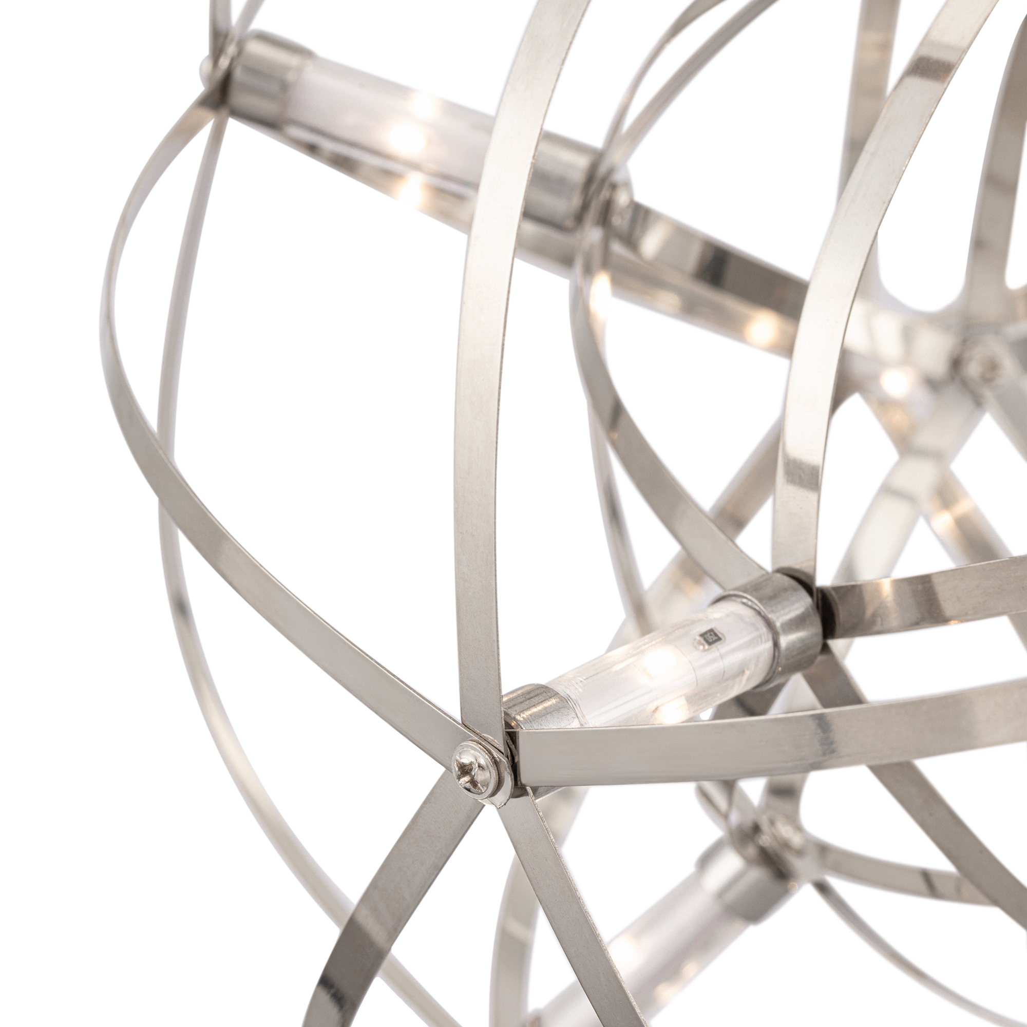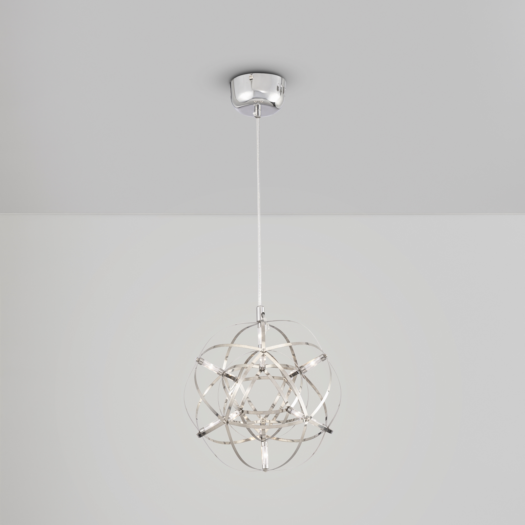 Серия Amber представляет воздушные светильники-сферы, выполненные в трендовом стиле хай-тек. Хромированная металлическая арматура и плафон, сотканный из переплетающихся лент, создают запоминающийся современный образ. Встроенные светодиоды экономят электроэнергию и красиво подсвечивают сферу. В выключенном состоянии светильник выглядит как абстрактное произведение искусства и является полноправной частью декоративного ансамбля интерьера. Серию составляют подвесы различного диаметра – их можно использовать по отдельности, а можно комбинировать в группы. Для обстановки в стиле хай-тек, минимализм, лофт, помещений кафе и ресторанов светильник станет идеальным решением.