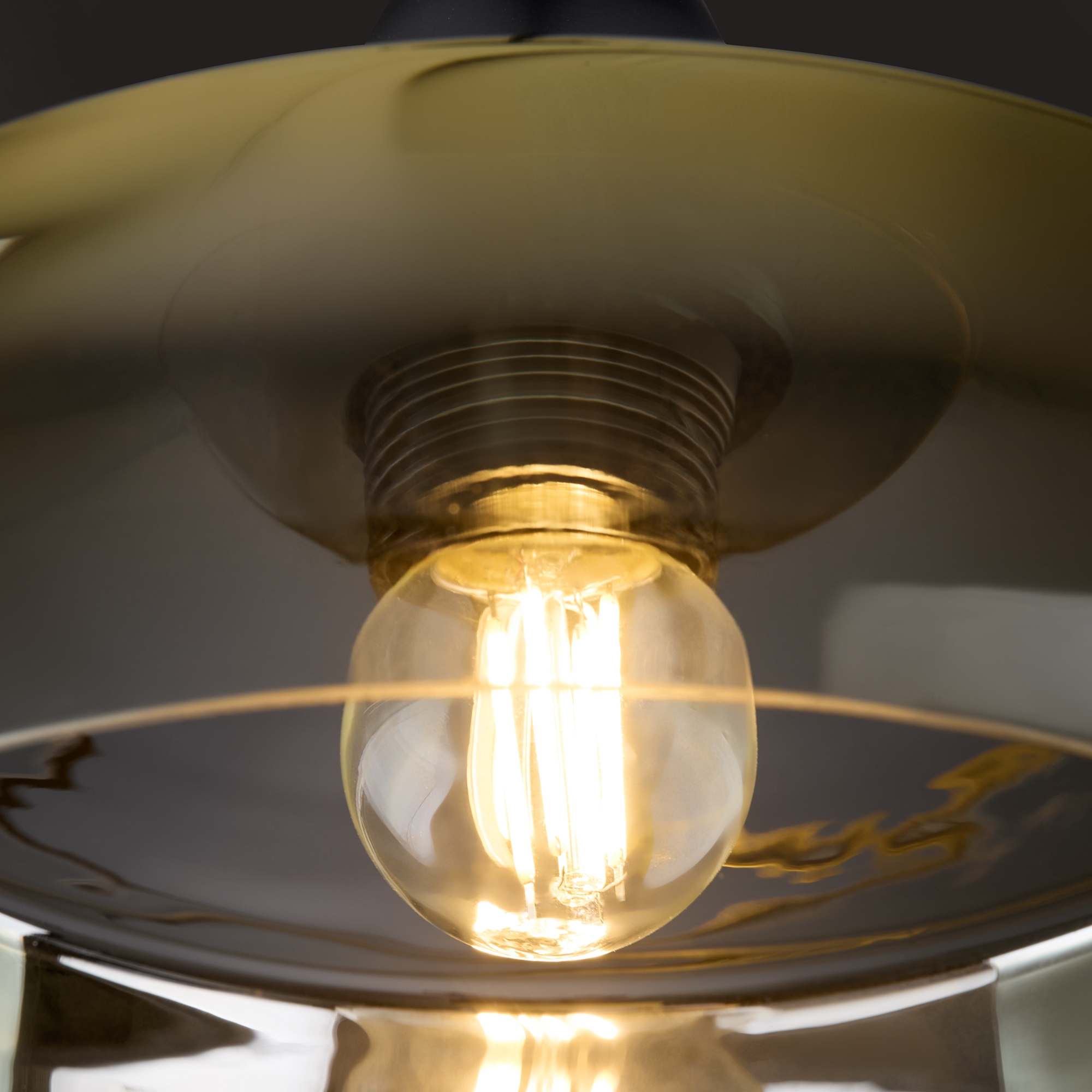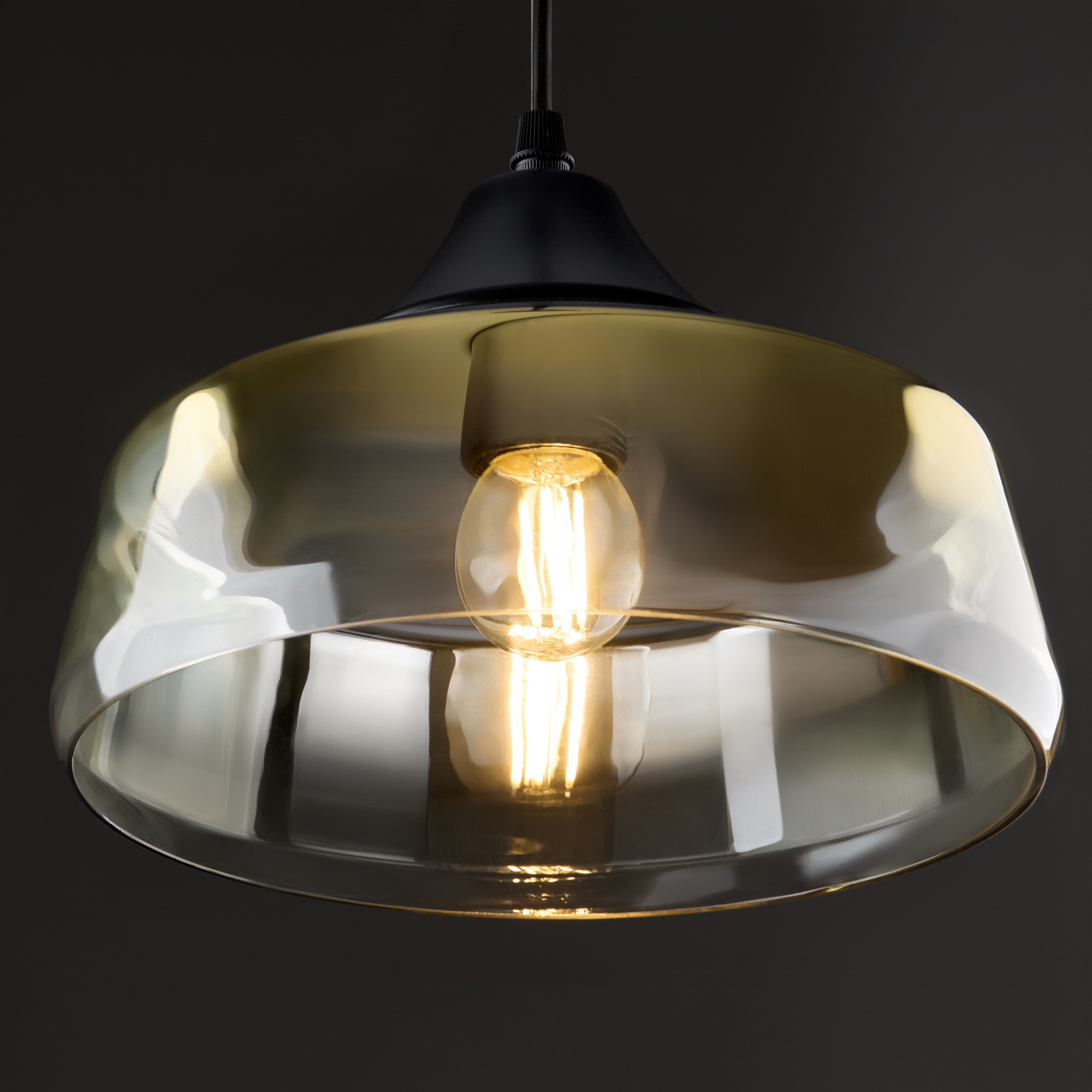 Металлическая арматура в черном цвете. Стеклянный плафон с мягким градиентным переходом оттенков. Цветовые решения – серый, янтарный. Трендовая обтекаемая форма. Источник света – лампа с цоколем E27.
