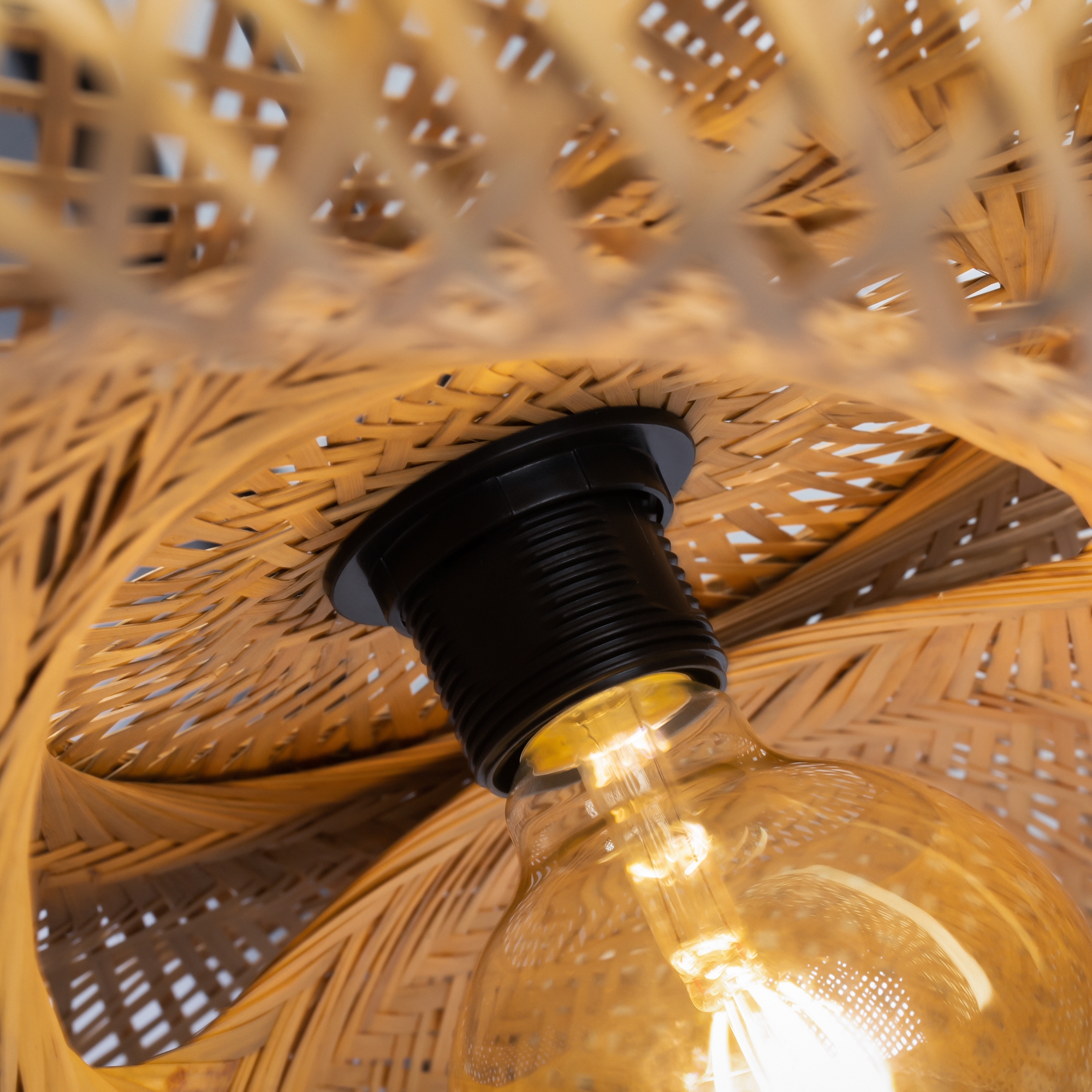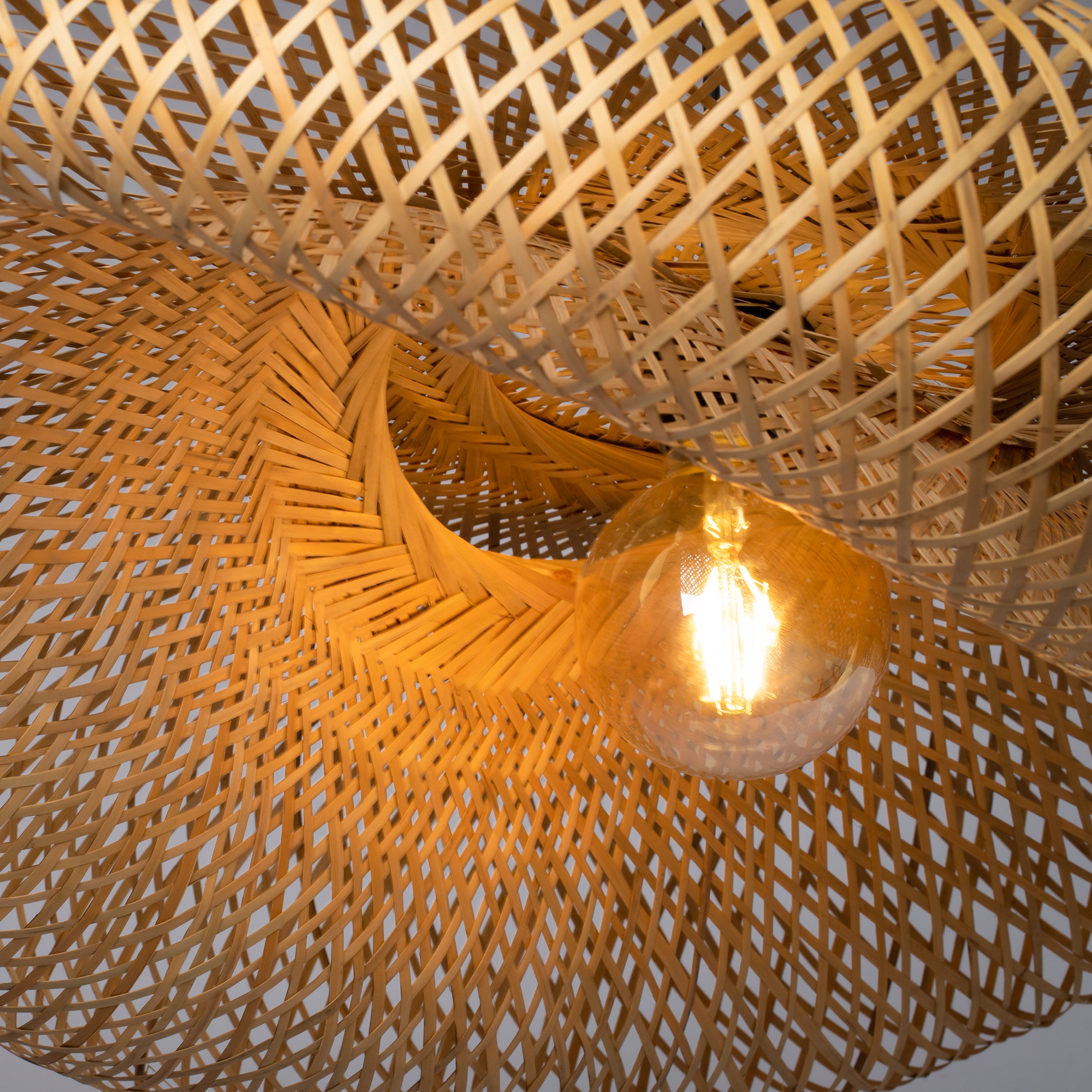 Материал чаши крепления - металл, цвет - черный. Абажур из натурального ротанга. Футуристические плавные формы архитектуры Захи Хадит и теплые природные материалы буквально сплетены в неповторимом дизайне. Форму абажура можно менять, развязав специльные узелки. Источник света - лампа с цоколем Е27.
