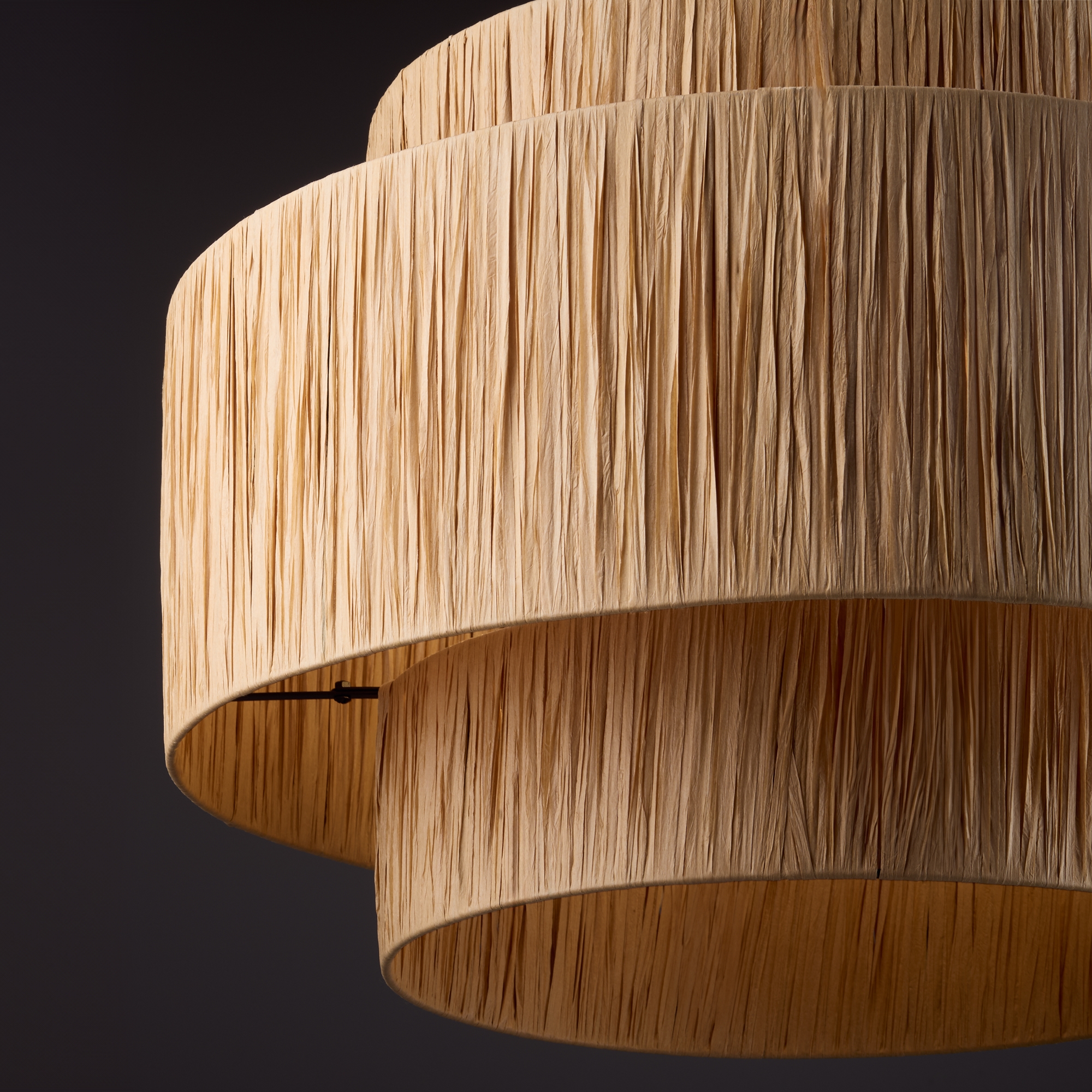 Материал основания - металл, цвет - черный. Абажур выполнен из бумажного шнура. Дизайн вдохновлен тромическими интерьерами в стиле бохо. Светильники окутывают пространство мягким светом, создавая атмосферу спокойствия и легкости. Источник светла - лампа с цоколем Е27.