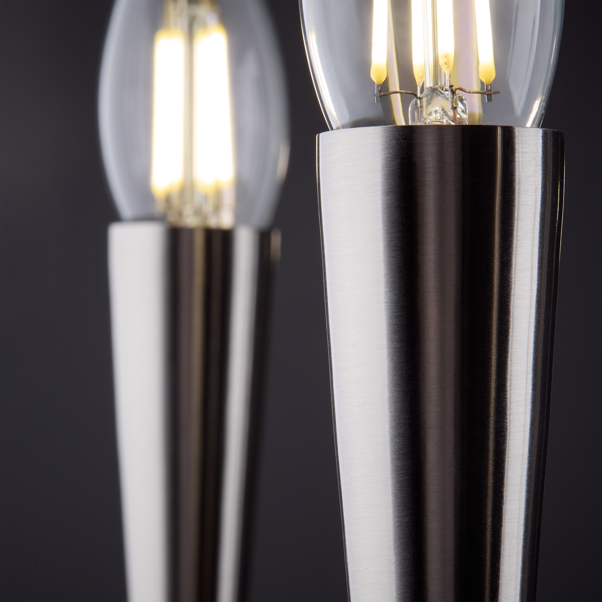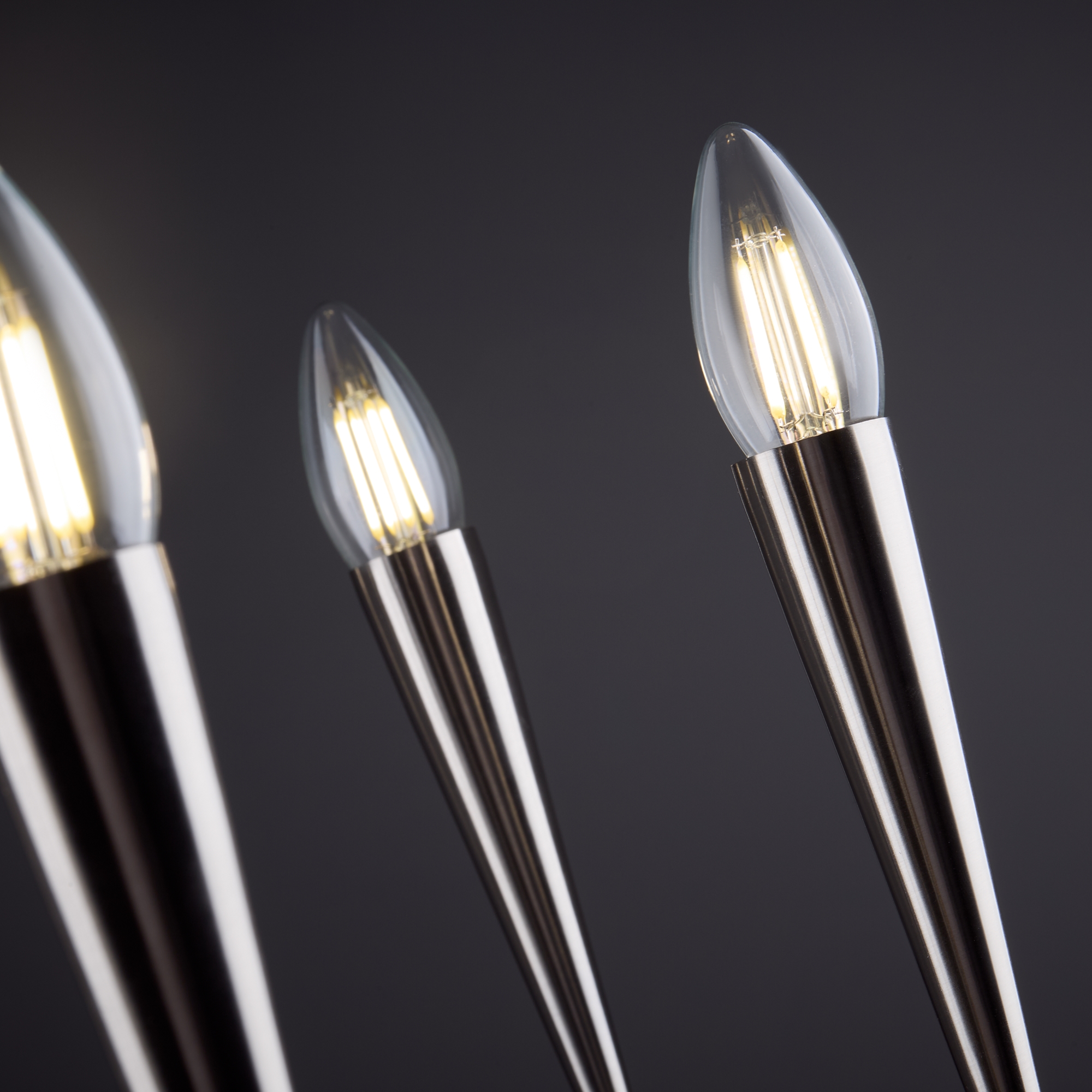 Металлическое основание, цвет - золото. Черная матовая арматура. Регулируемая высота плафонов за счет изменения длины проводов. Овальные плафоны из белого матового стекла с резьбой для удобной самостоятельной замены ламп. Цоколь G9. Лампы в комплект не входят.