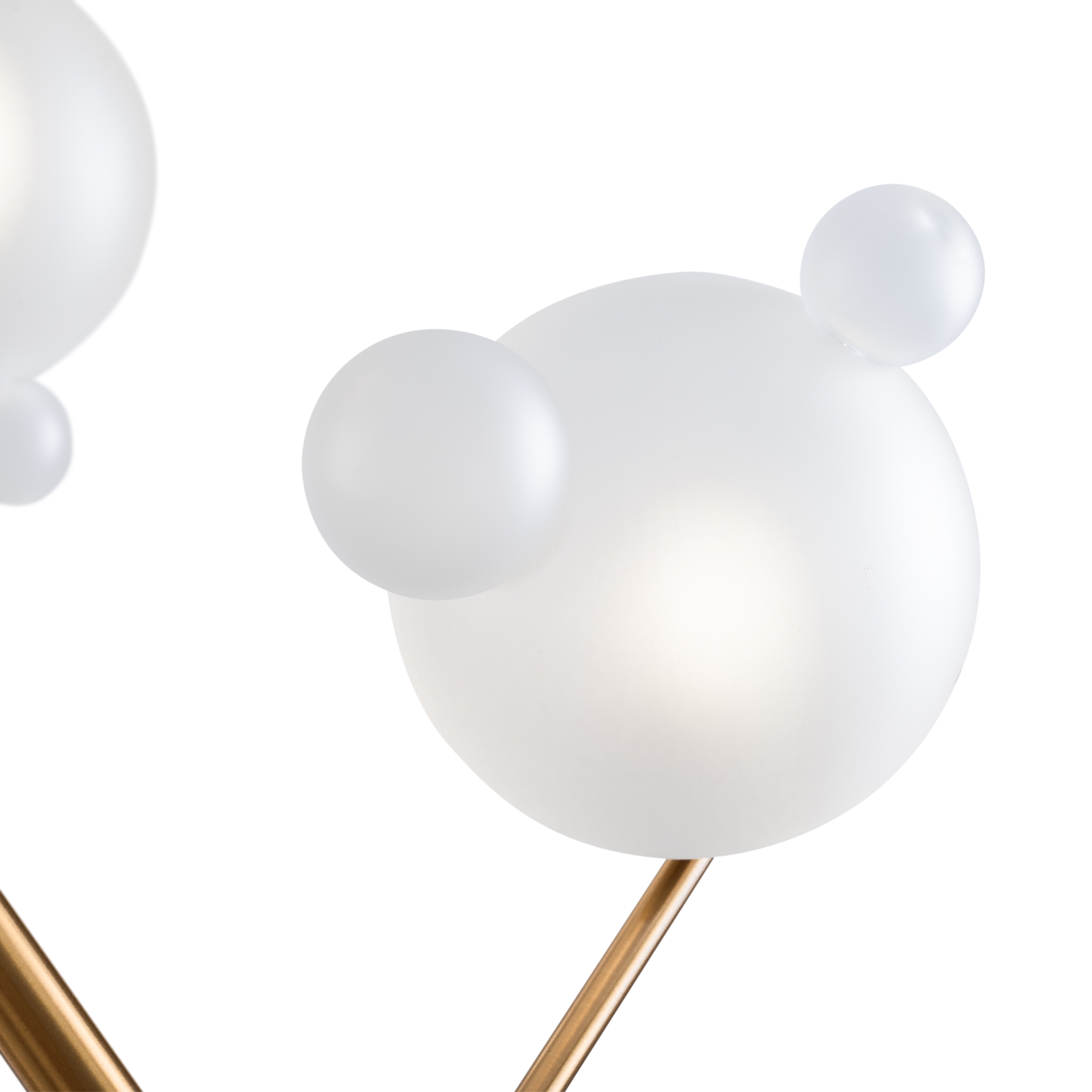 Арматура — металл, цвет— латунь. Белые плафоны из стекла с декоративными “ушками” - напоминают образ знаменитого диснеевского героя. Ассиметричный силуэт создает эффект подвижной игры. Высота подвесных моделей регулируется. Источник света - лампа с цоколем G9