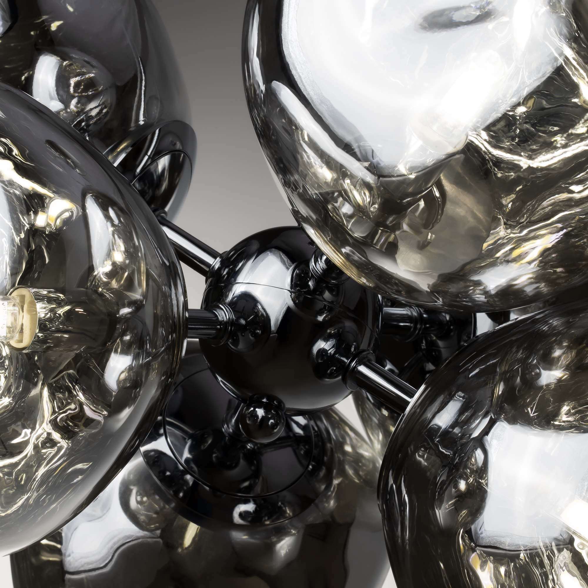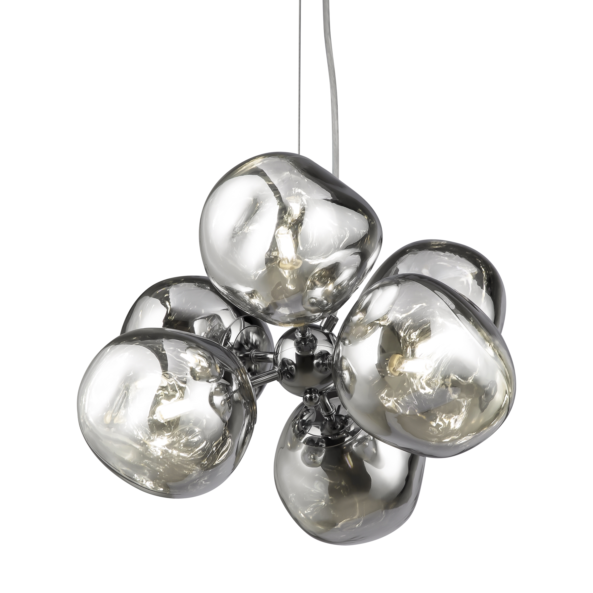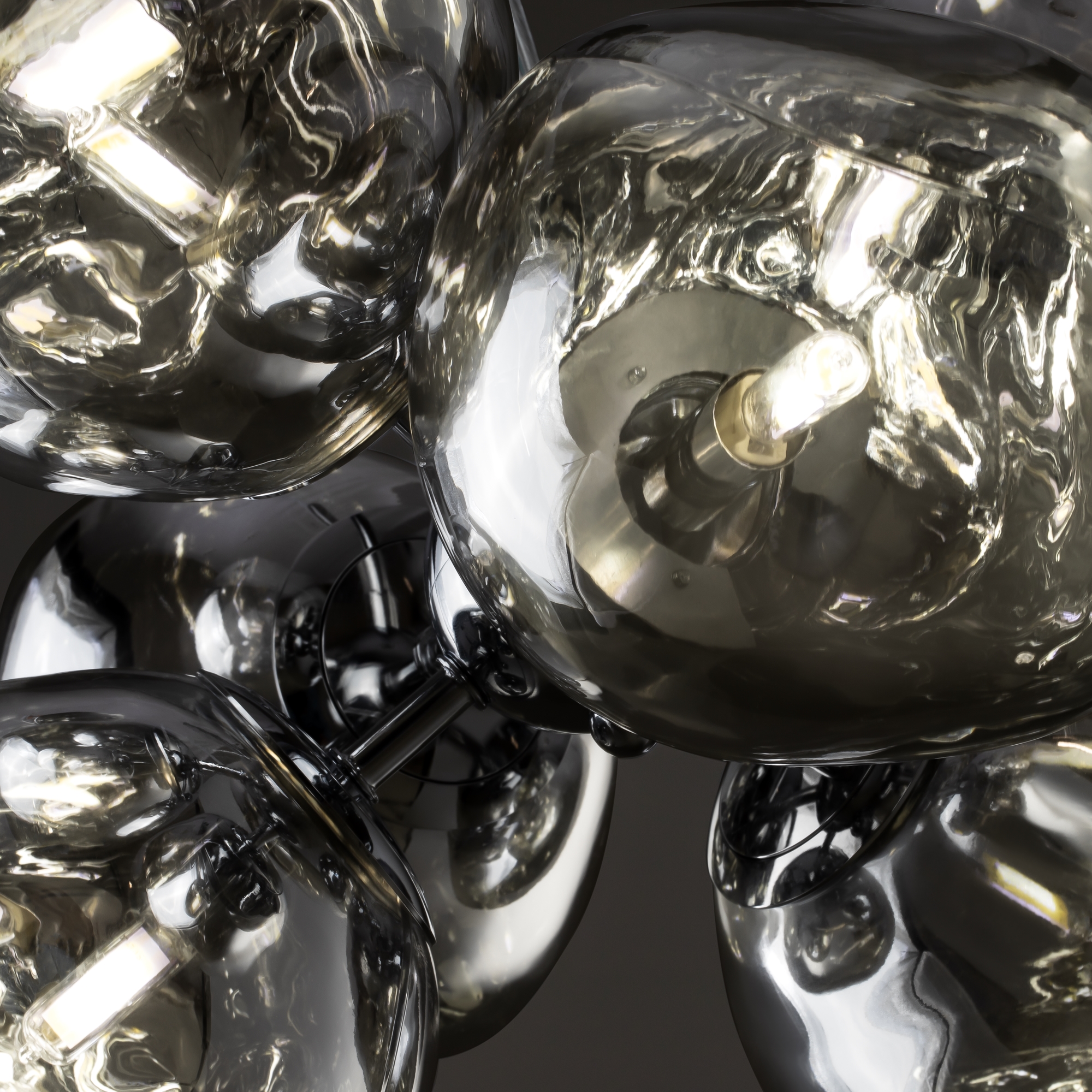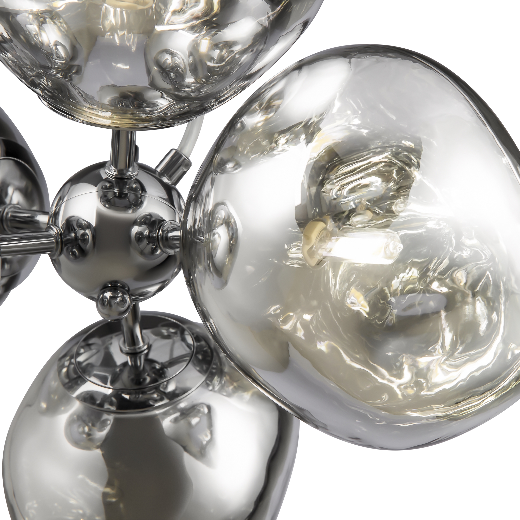 Арматура — металл, цвет — хром. Шарообразные плафоны с зеркальным эффектом и переливами. Материал - стекло с серебристым напылением. Источник света — лампа с цоколем — Е27 и G9.