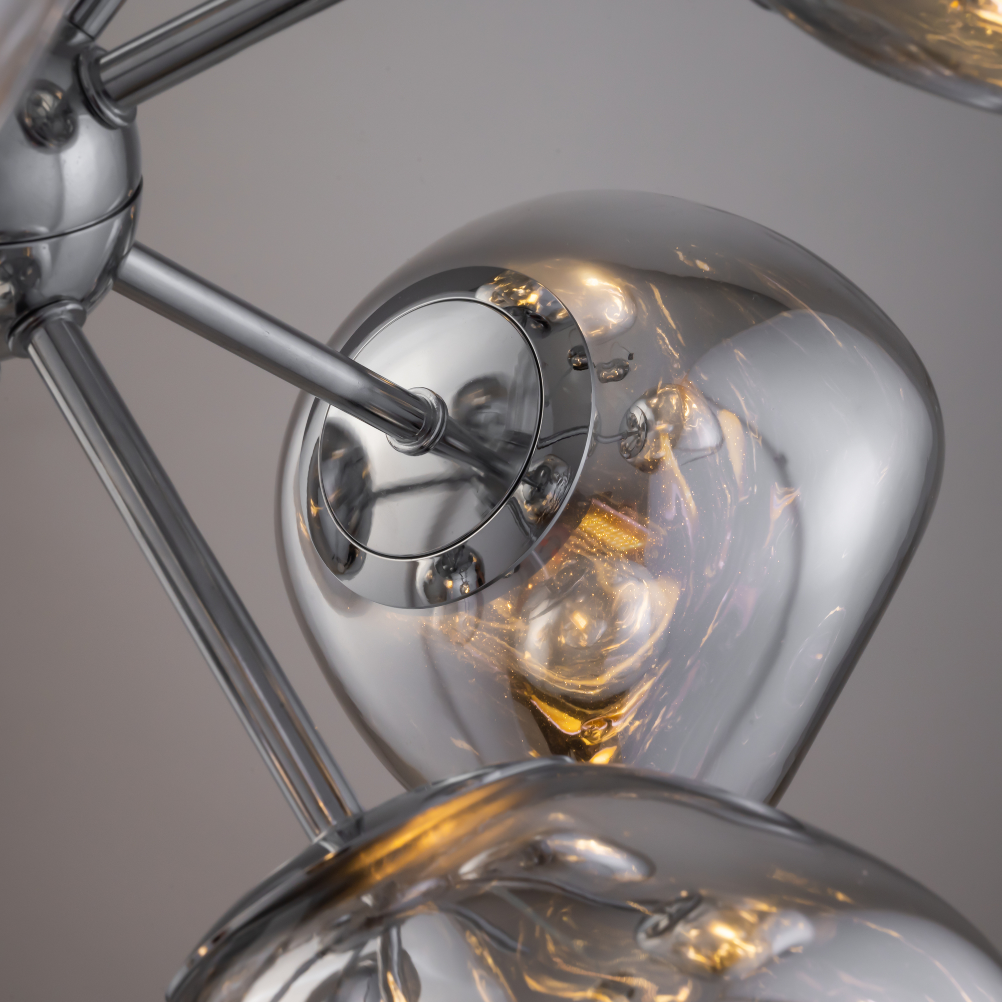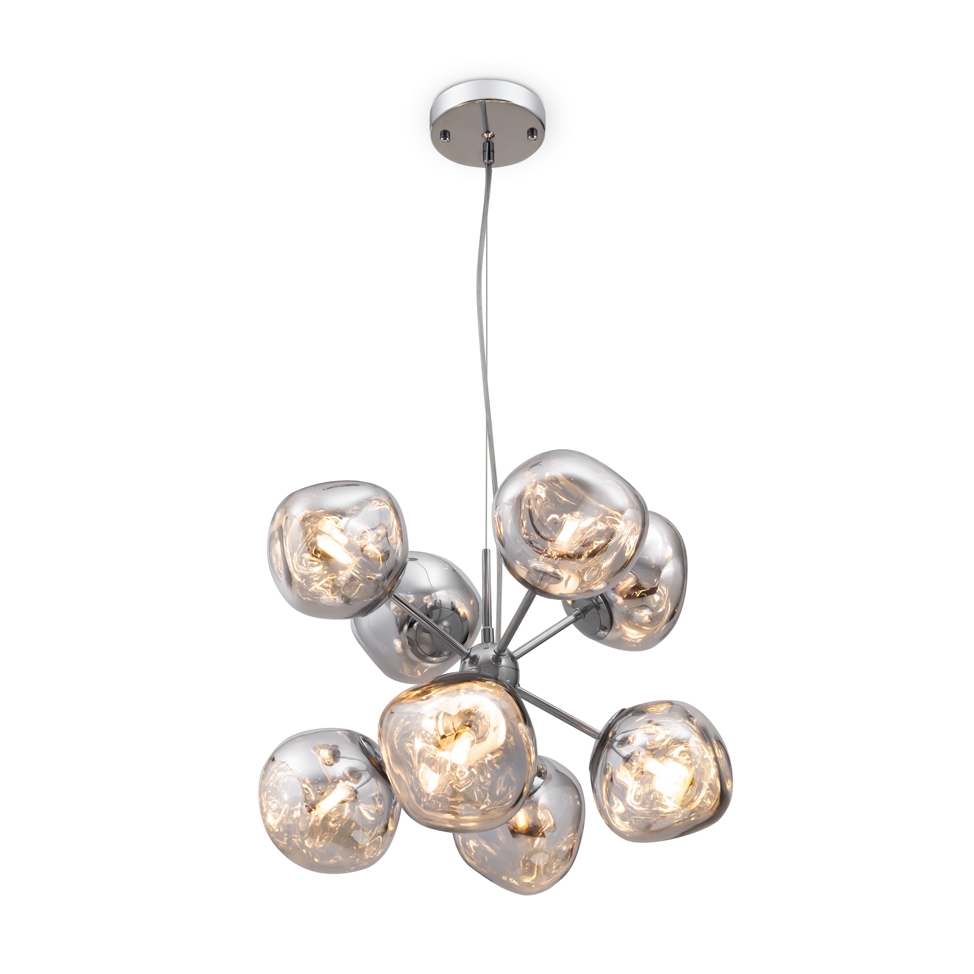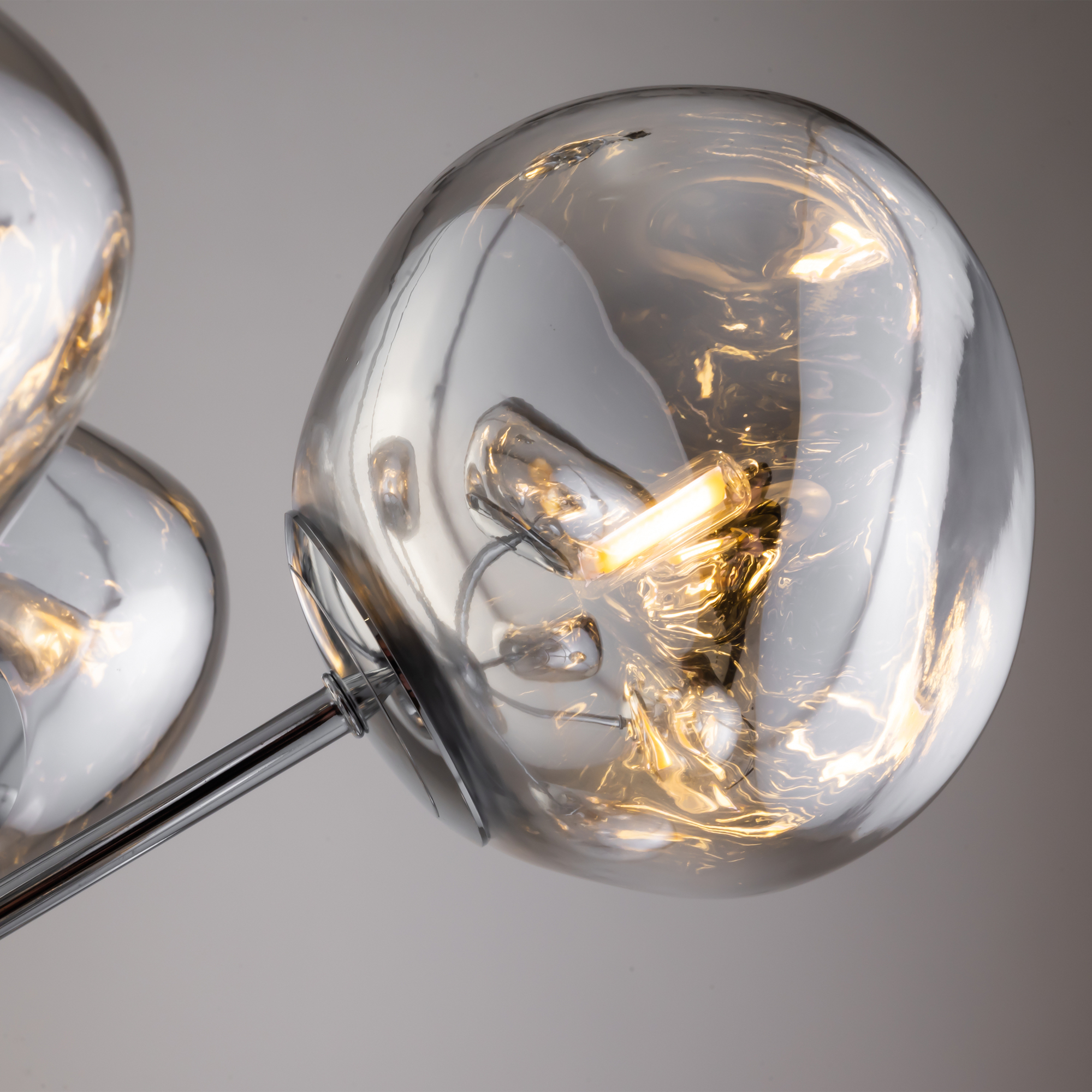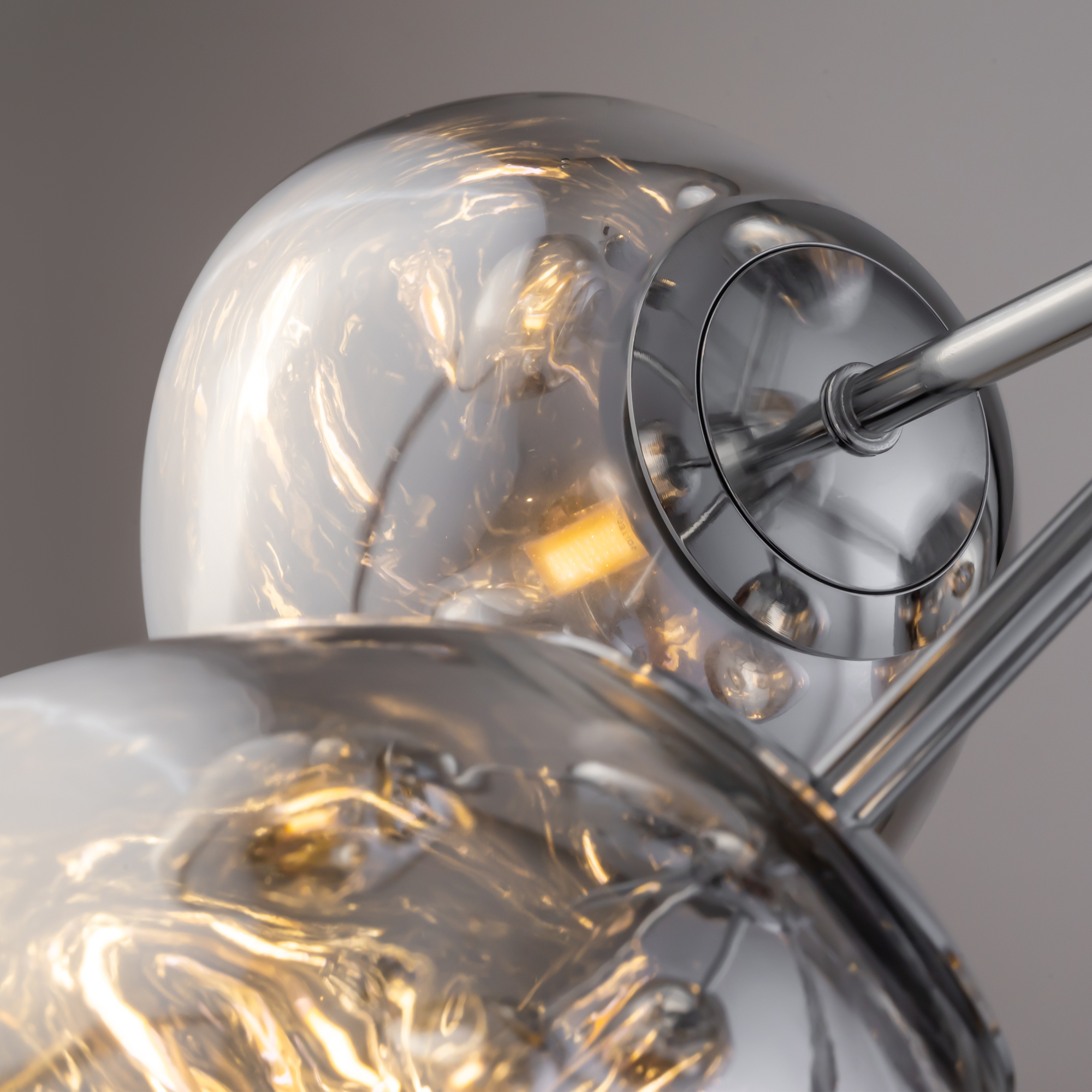 Арматура — металл, цвет — хром. Шарообразные плафоны с зеркальным эффектом и переливами. Материал - стекло с серебристым напылением. Источник света — лампа с цоколем — Е27 и G9.