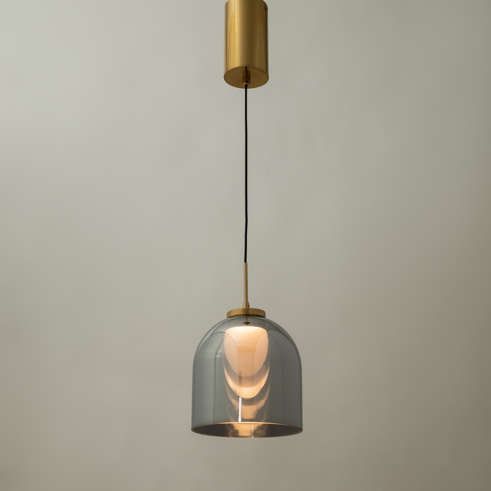 Арматура — металл, цвет — латунь. Плафоны из прозрачного стекла с дымчатым оттенком в форме овала, круга или конуса. Универсальный минималистичный дизайн позволяет составлять комбинации из нескольких подвесов. Регулируемая высота. Тренд «invisible light» - LED-источник света утоплен в основание плафона. Цветовая температура - 3000К.