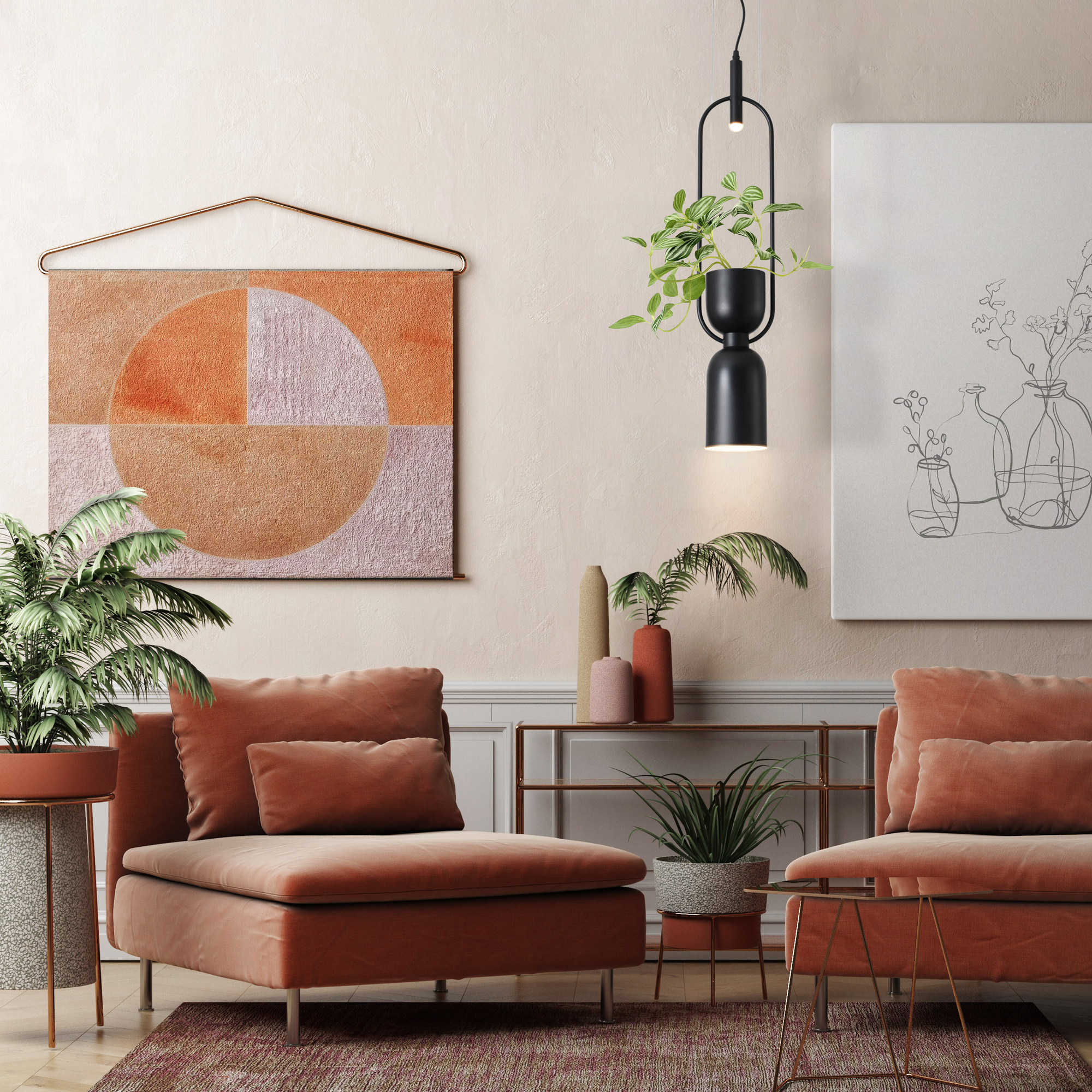 Уникальный светильник-кашпо в форме песочных часов. Верхняя часть плафона представляет собой кашпо для использования под натуральные или искусственные растения. Корпус светильника выполнен из металла, цвет - черный. Комбинированный источник света. В верхней части - светодиодный свет с теплой цветовой температурой 3000К для подсветки растения. В нижней части плафона - лампа с цоколем Е27 для основного освещения пространства. Светильник идеально подойдет для создания композиций.