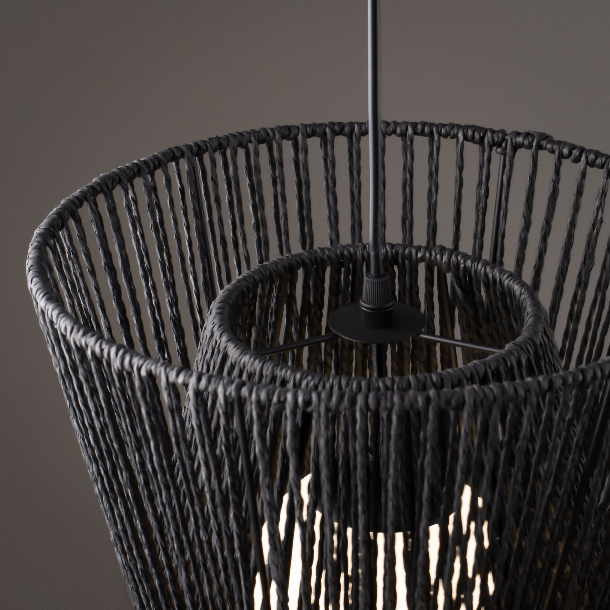 Современный актуальный свет в стиле загородного отдыха. Абажуры из металлического каркаса с обмоткой из натуральных материалов. Материал абажура - металл и веревка из бумаги paper rope. Два цвета - черный и молочный. Источник света - сменные лампы внутри белого матового стеклянного плафона, который создает мягкий рассеянный свет. Эко-дизайн создает атмосферу комфорта и уюта для жилых или коммерческих помещений.