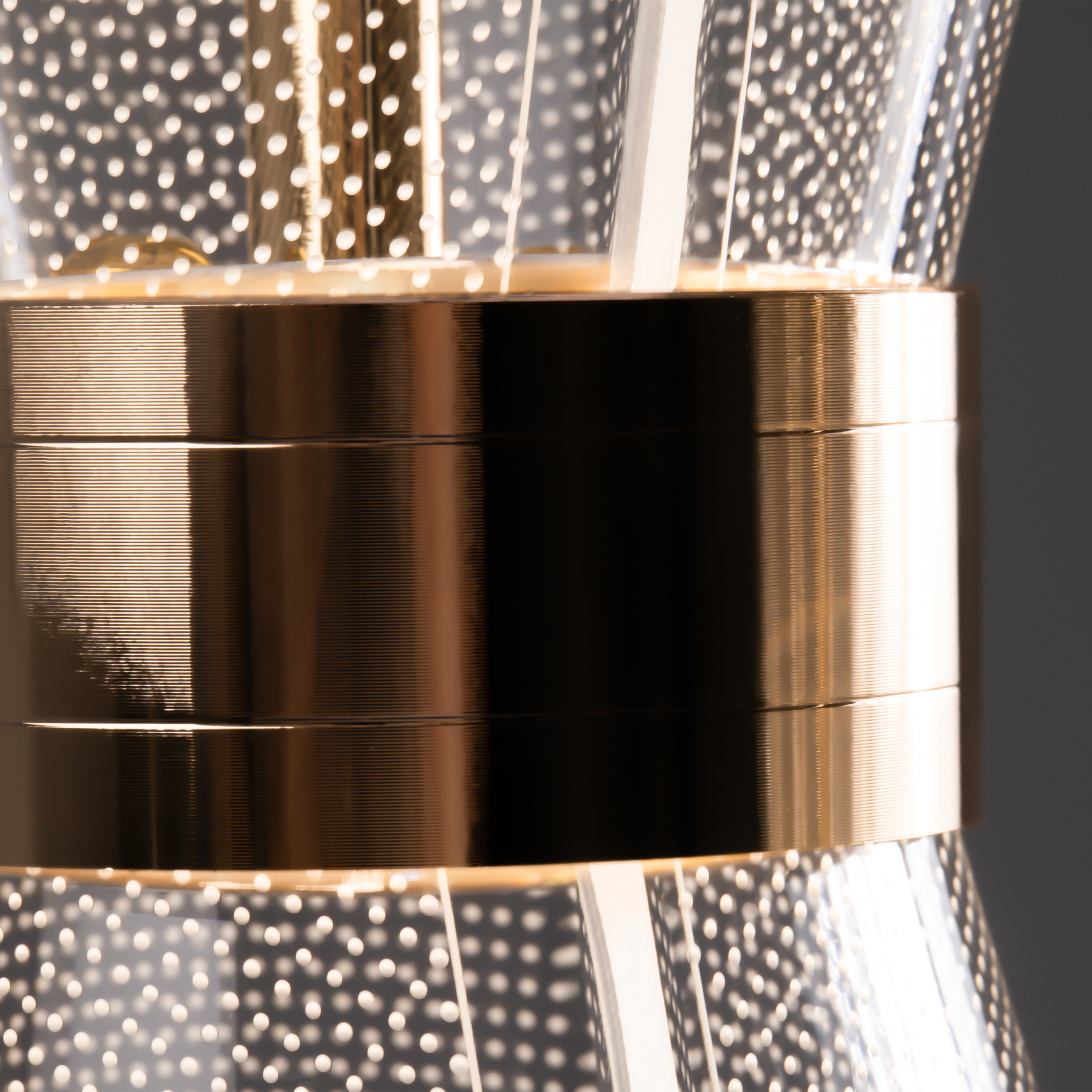 Арматура металл. Цвет золото. Плафоны из акрила. Форма песочные часы. Золотая окантовка как декоративный элемент. К светильникам прилагается пульт управления. LED источник света. Цветовая температура 2600-6000К.