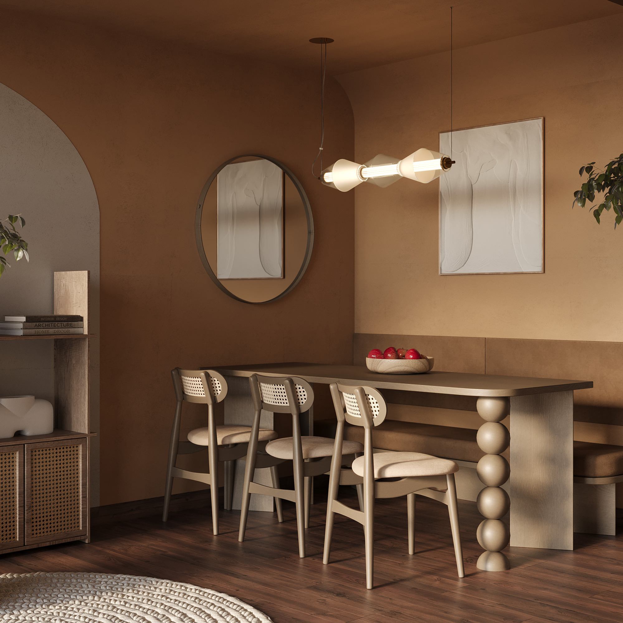 Арматура из металла. Цвет латунь. Плафон из матового, кристально прозрачного и дымчатого стекла. Горизонтальные и вертикальные подвесы. LED источник света. Цветовая температура 3000К.