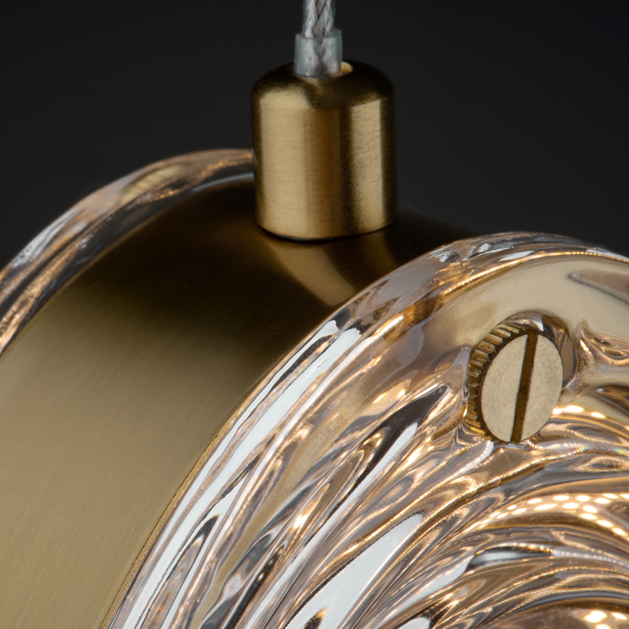 Арматура металл. Цвет латунь. Плафон из подкрашенного стекла. Одинарные подвесы 3 х цветов и в том числе популярный каскад сочетающий в себе три цвета подвесов. LED источник света. Цветовая температура 3000К.