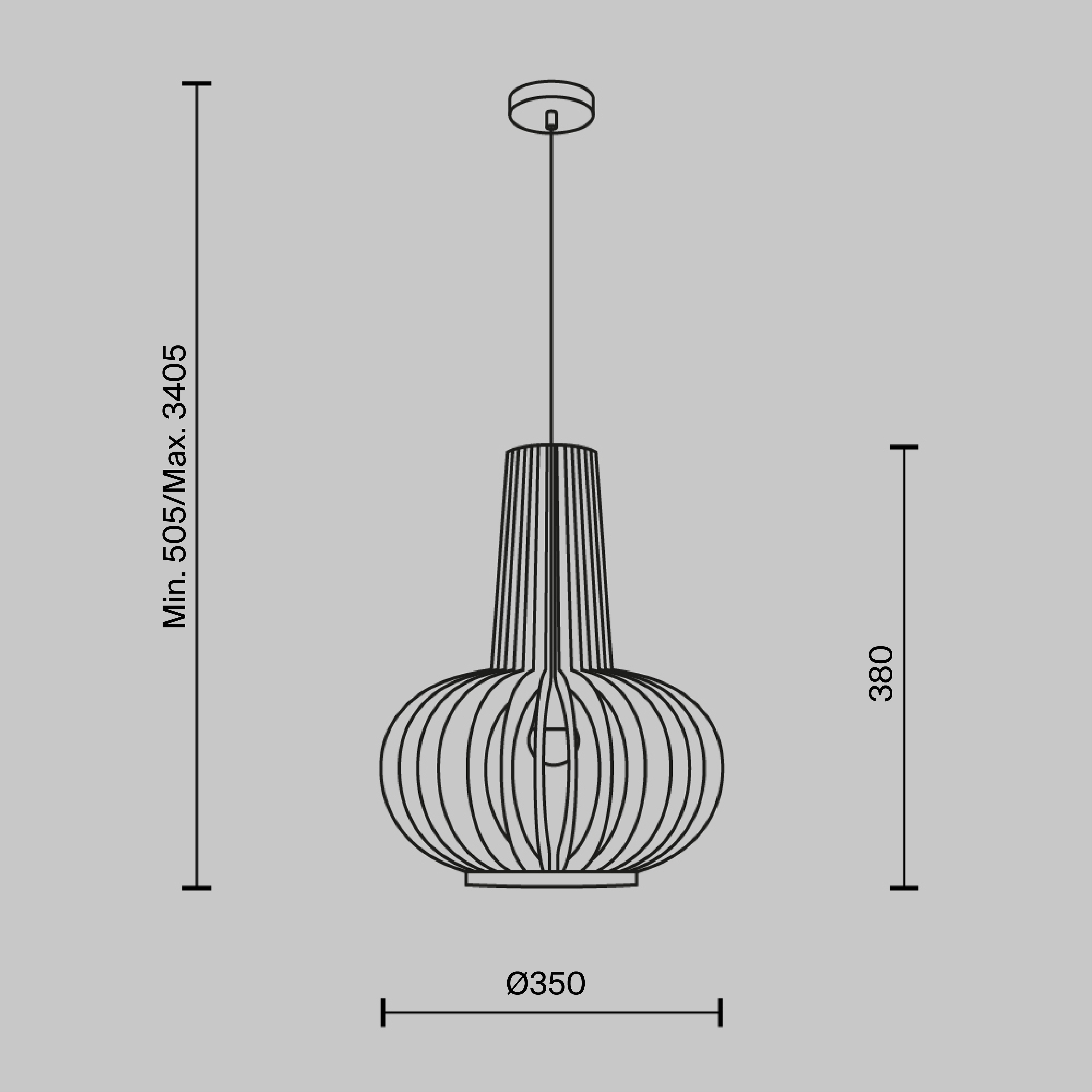 Материал арматуры – металл, цвет – черный. Абажур – 5-ти слойная фанера бежевого оттенка, покрытая специальным ла- ком. Тканевый черный провод. Регулируемая высота. Простые лаконичные форма, природные материалы. Цоколь E27.