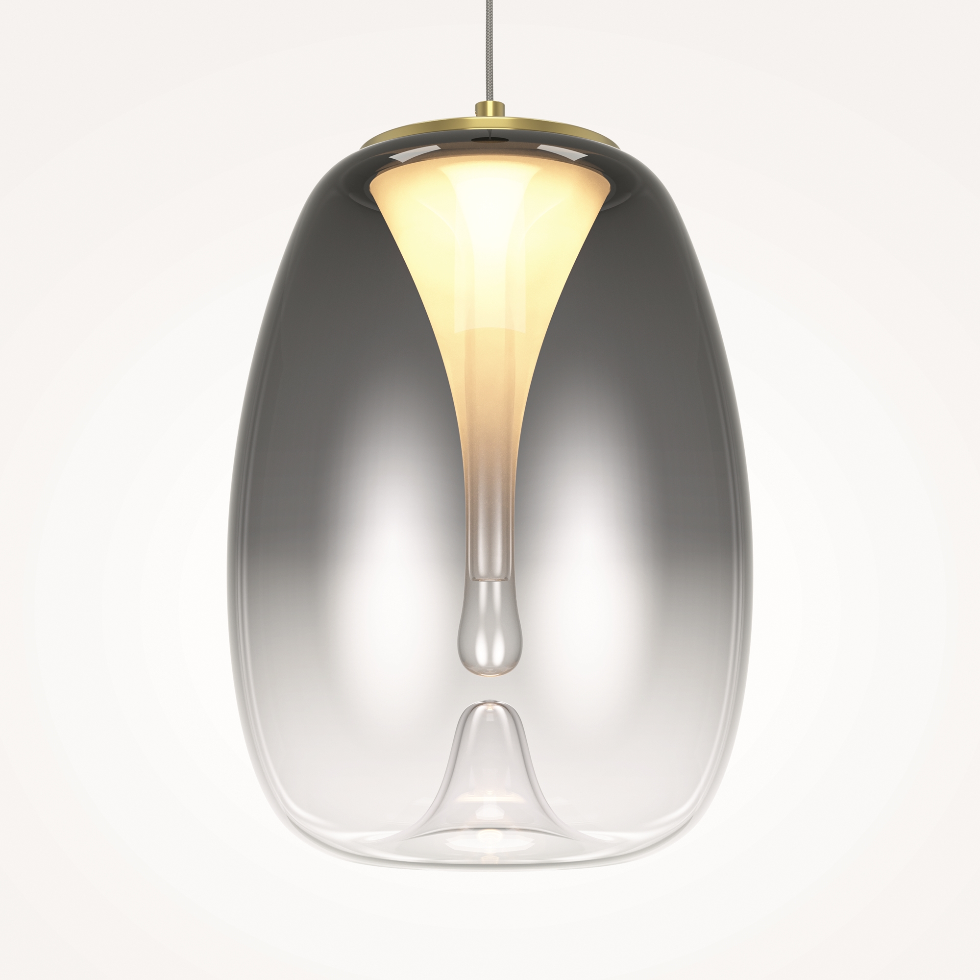 Цвет арматуры - сатинированное золото. Плафоны из двойного стекла. Внешние плафоны в двух цветах: прозрачный и гальванизированный серый с эффектным градиентом - придают освещению глубину и насыщенность. LED источник света с цветовой температурой 3000K. Провод подвесных светильников регулируемый - длина 3 метра. Идеальны для помещений с высокими потолками.