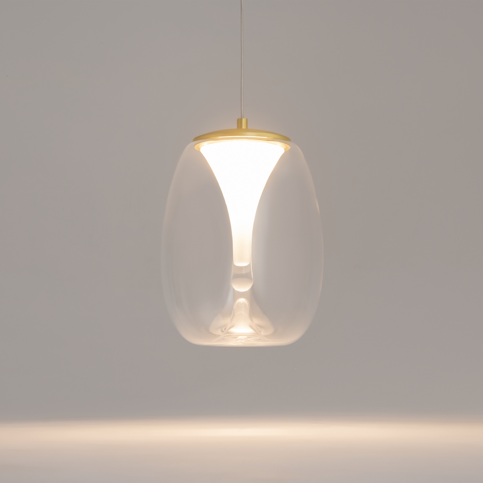 Цвет арматуры - сатинированное золото. Плафоны из двойного стекла. Внешние плафоны в двух цветах: прозрачный и гальванизированный серый с эффектным градиентом - придают освещению глубину и насыщенность. LED источник света с цветовой температурой 3000K. Провод подвесных светильников регулируемый - длина 3 метра. Идеальны для помещений с высокими потолками.