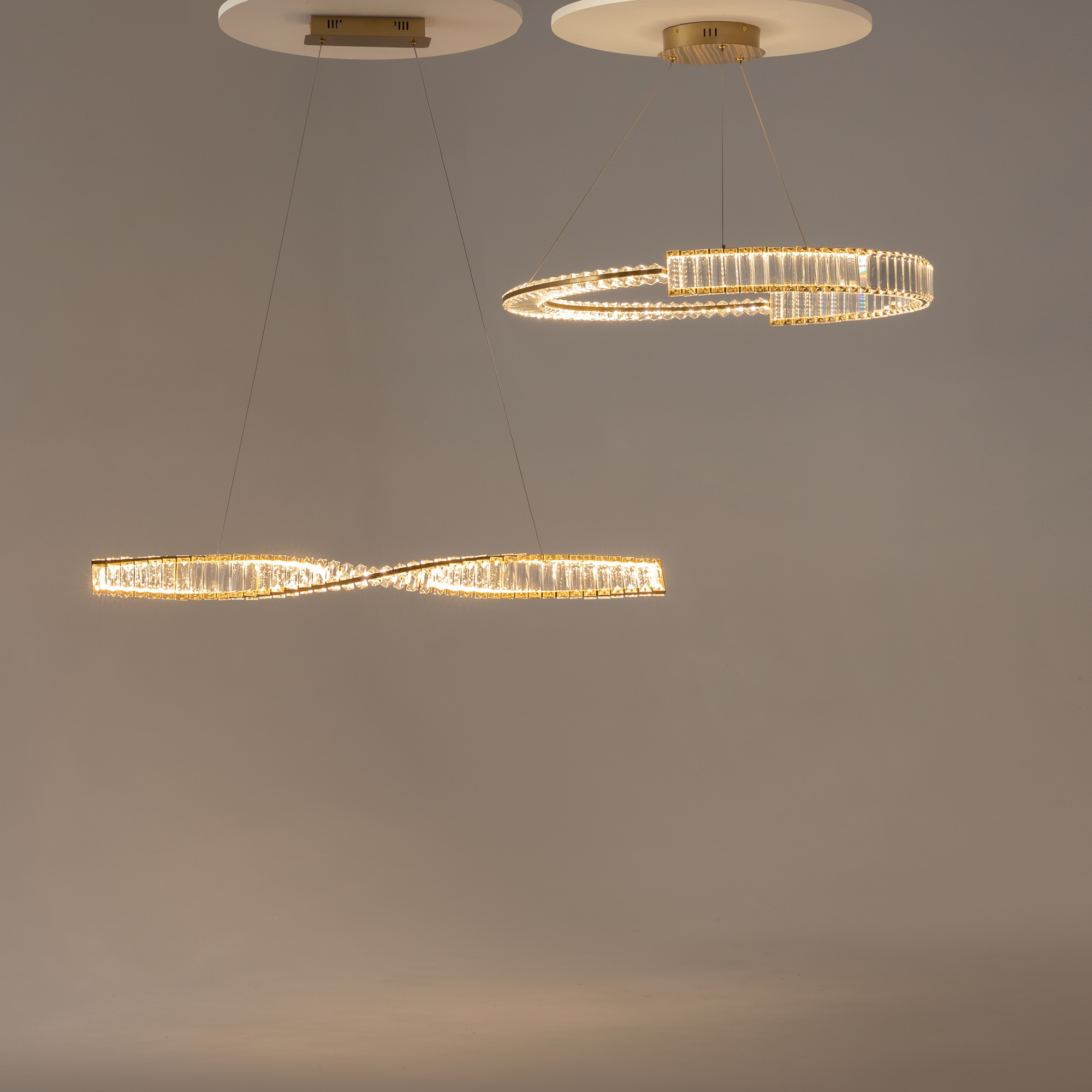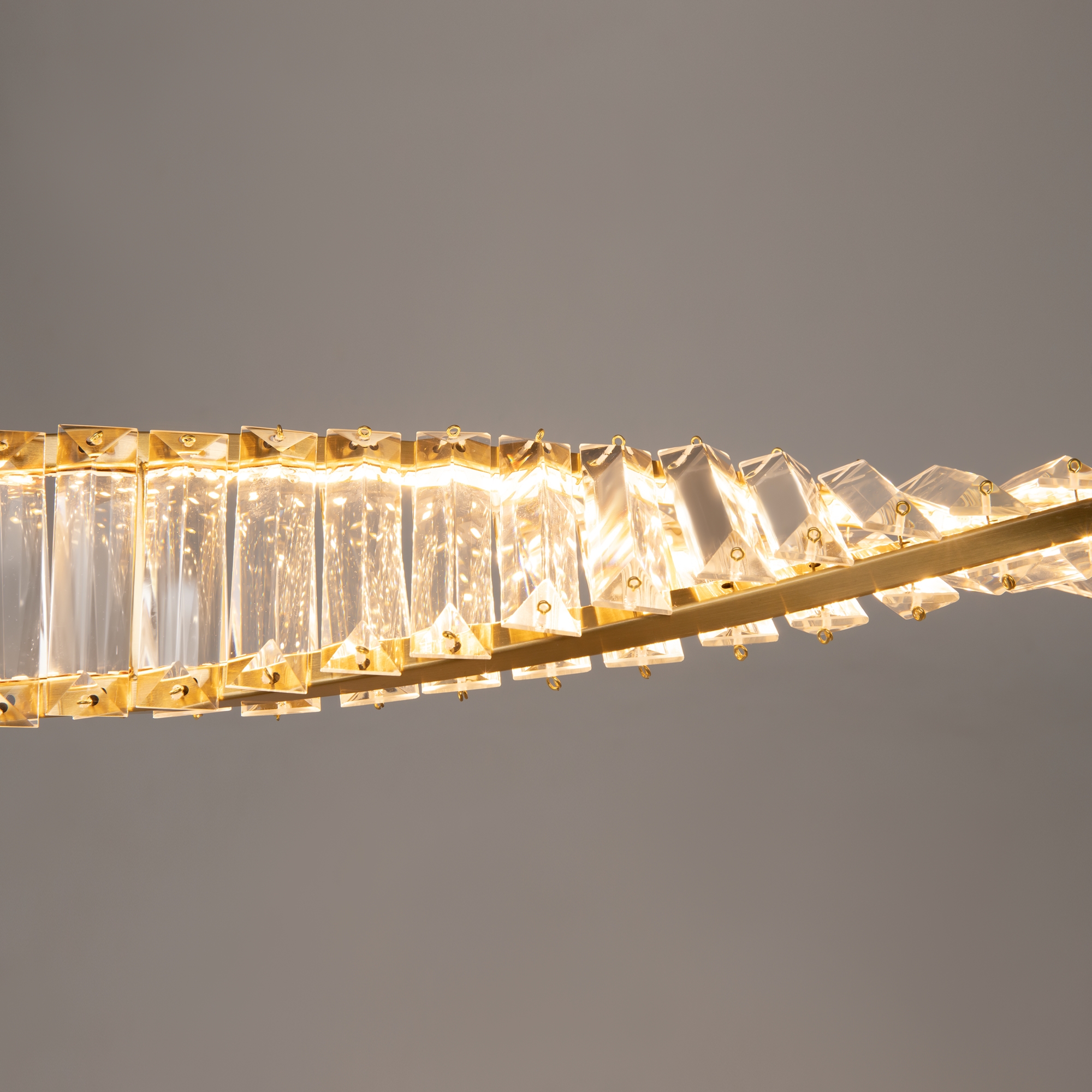 Металлическая арматура, цвет - латунь. Асимметричный хрустальный декор. LED-источник света. Цветовая температура - 3000К. Высокий индекс цветопередачи 90Ra