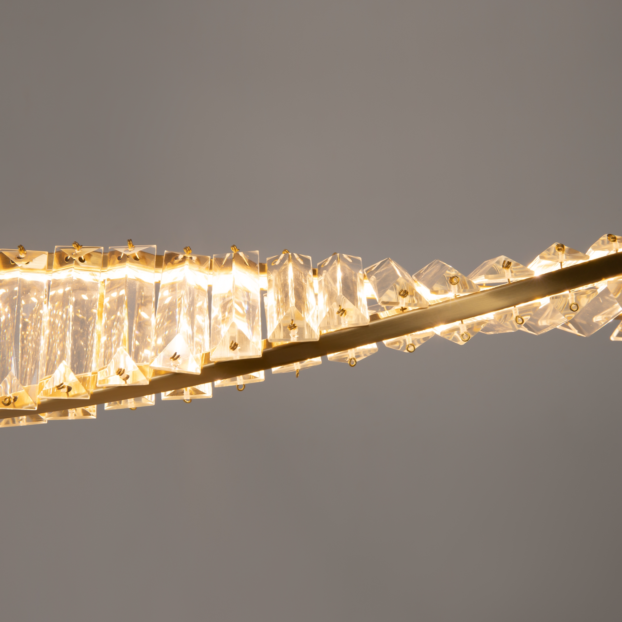 Металлическая арматура, цвет - латунь. Асимметричный хрустальный декор. LED-источник света. Цветовая температура - 3000К. Высокий индекс цветопередачи 90Ra