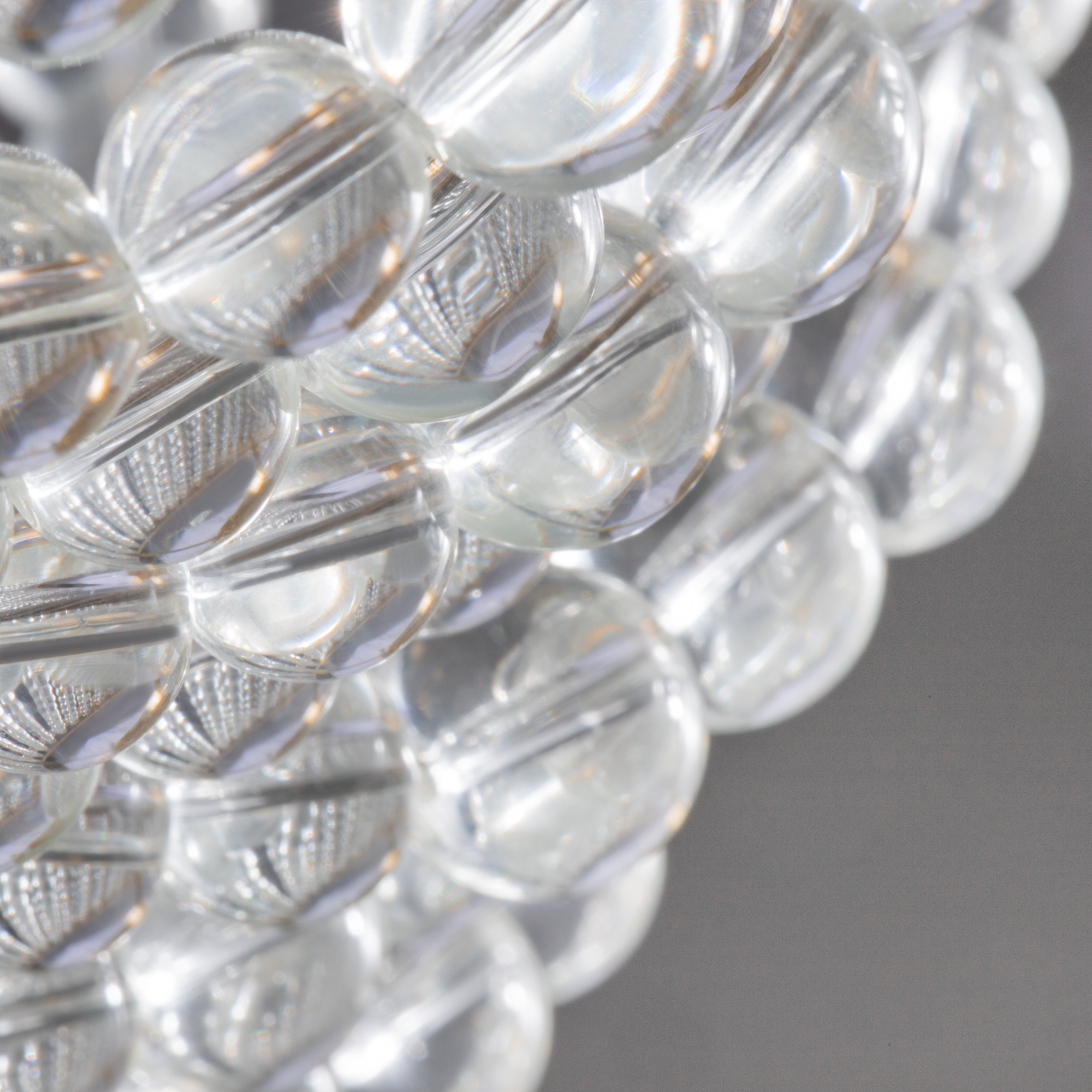 Материал абажура — хрустальное стекло, цвет — прозрачный. Металлическая арматура в цвете латунь. Потолочный светильник не регулируется по высоте. Источник света — лампы с цоколем Е14. Степень защиты — IP20.