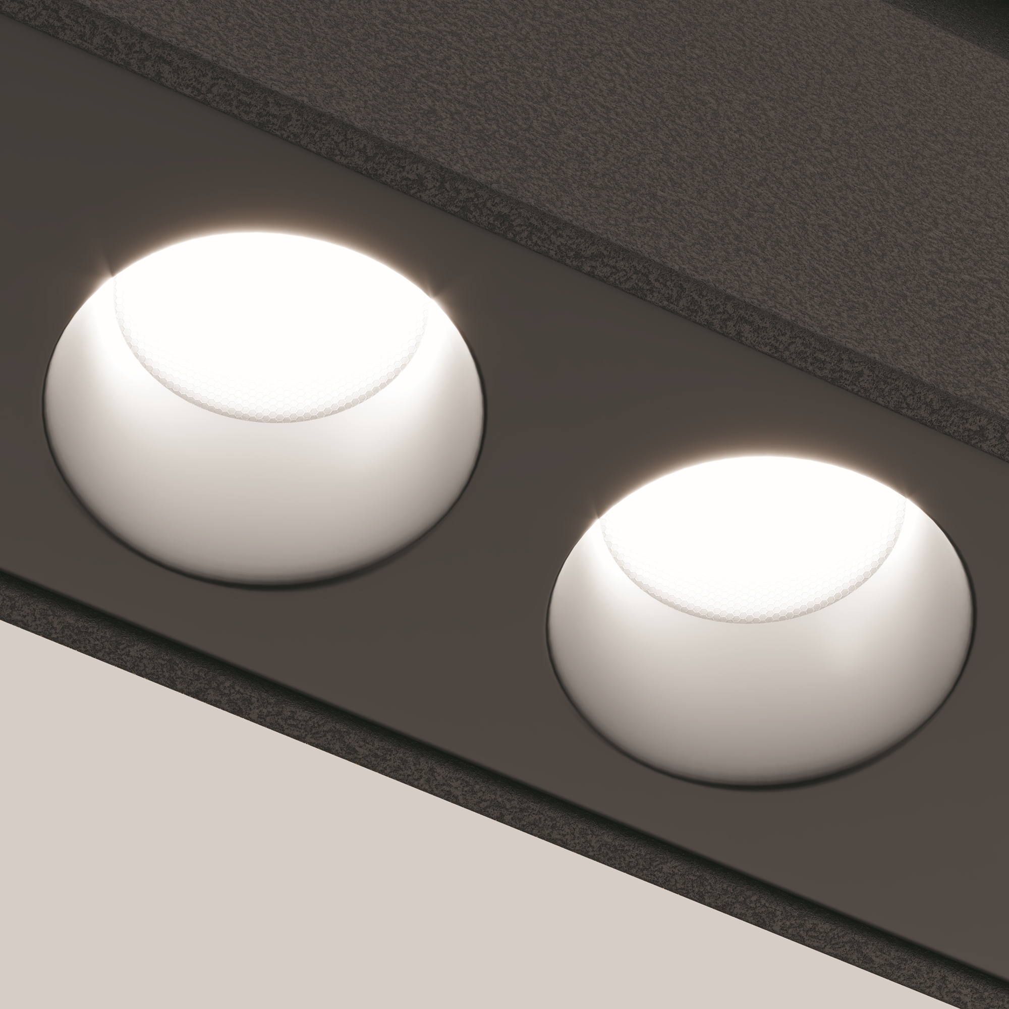 Алюминиевый корпус в черном и белом цветах. Три размера – три варианта мощности. LED-источник света. Скрытый источник света - уникальный оптический эффект света из ниоткуда. Угол рассеивания — 36°. Цветовая температура 3000К и 4000К, а также умные модели с регулируемым диапазоном от 3000К до 6000К и диммированием по протоколу Bluetooth Mesh. Это позволяет управлять группой или отдельным светильником: вкл/выкл, диммировать, изменять цветовую температуру. Также доступно беспроводное управление светом со смартфона, пульта, с помощью голосовых помощников."