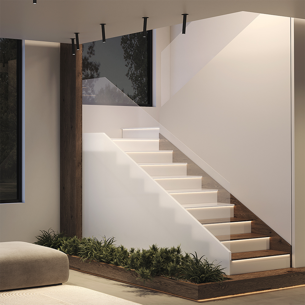 Материал корпуса – металл; цвет – белый, чёрный и латунный. Миниатюрные размеры. Плафон из двух частей. Горизонтальный и вертикальный поворотный механизм. LED-источник света. Цветовая температура – 3000К или 4000К. Высокий коэффицициент цветопередачи >90.